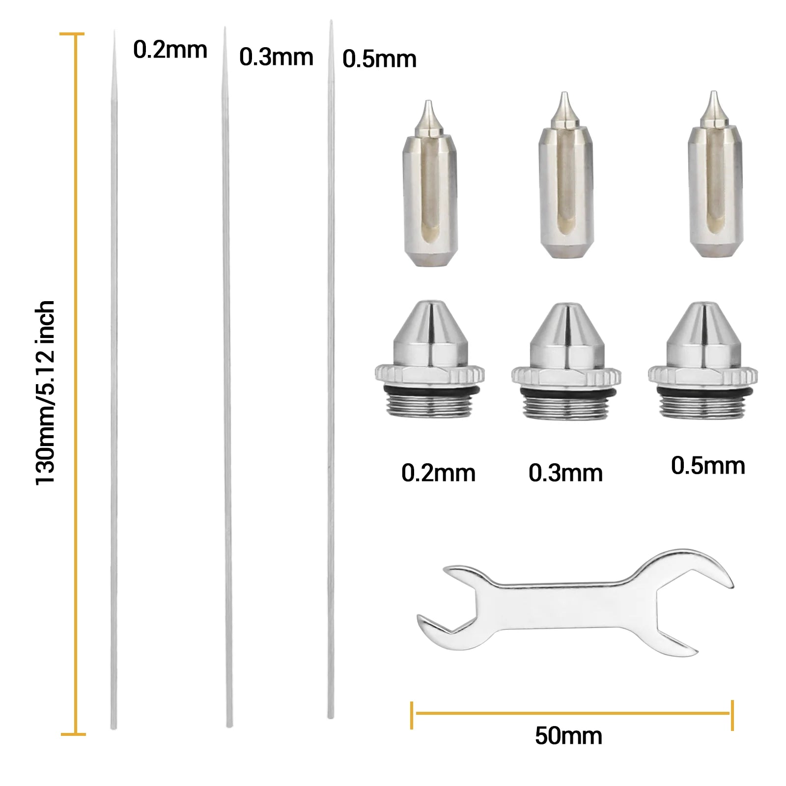0.2mm/0.3mm/0.5mm Airbrush Nozzle & Needle Replacement Parts for NCT-SJ83 Airbrush