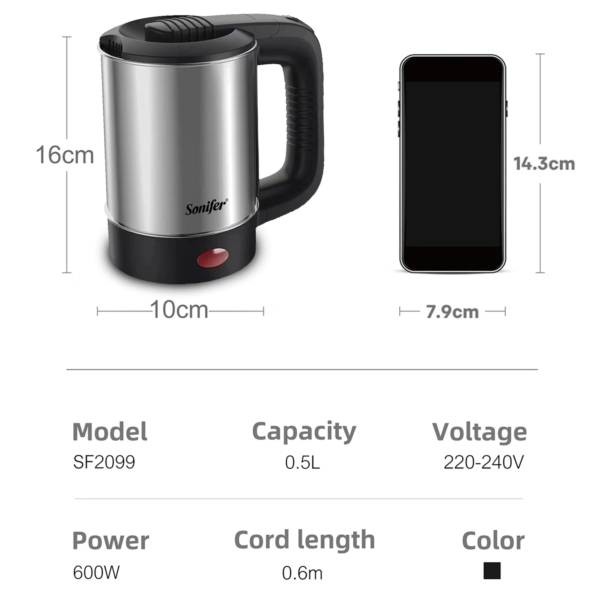 - 1 x SONIFER 0.5L Mini Electric Kettle