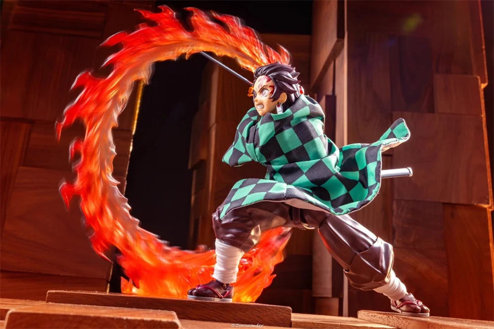 1/12 Scale Demon Slayer Action Figure – Tomioka Giyuu & Kamado Tanjirou with Grid Cloak Kimono for 6" Body Models