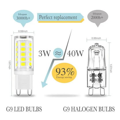 Easy Installation and Versatile Use: Designed with a standard G9 base, these bulbs are incredibly easy to install. Their compact size and neutral design make them suitable for a variety of settings, including residential and commercial spaces.
