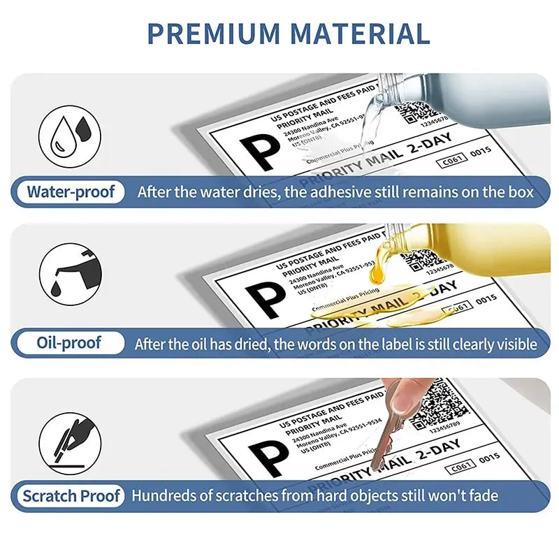 - Premium, Durable Material: Crafted from high-quality paper, these labels are designed to withstand the rigors of shipping. Waterproof, oil-proof, and resistant to scratches, they ensure your package arrives looking as professional as when it left.
