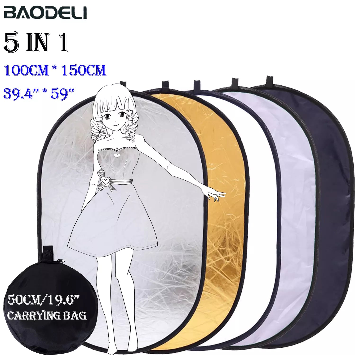 100x150cm 5-in-1 Portable Collapsible Light Oval Photography Reflector: Multi-Photo Studio Reflector for Outdoor Shooting
