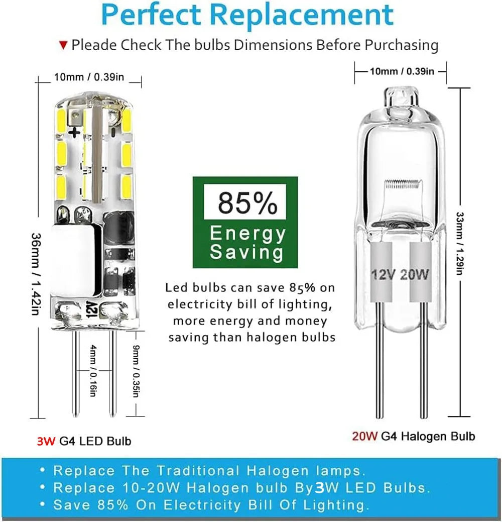Easy Installation: Fitted with a standard G4 base, installation is straightforward and compatible with existing fixtures, allowing you to upgrade your lighting without the need for new fittings.