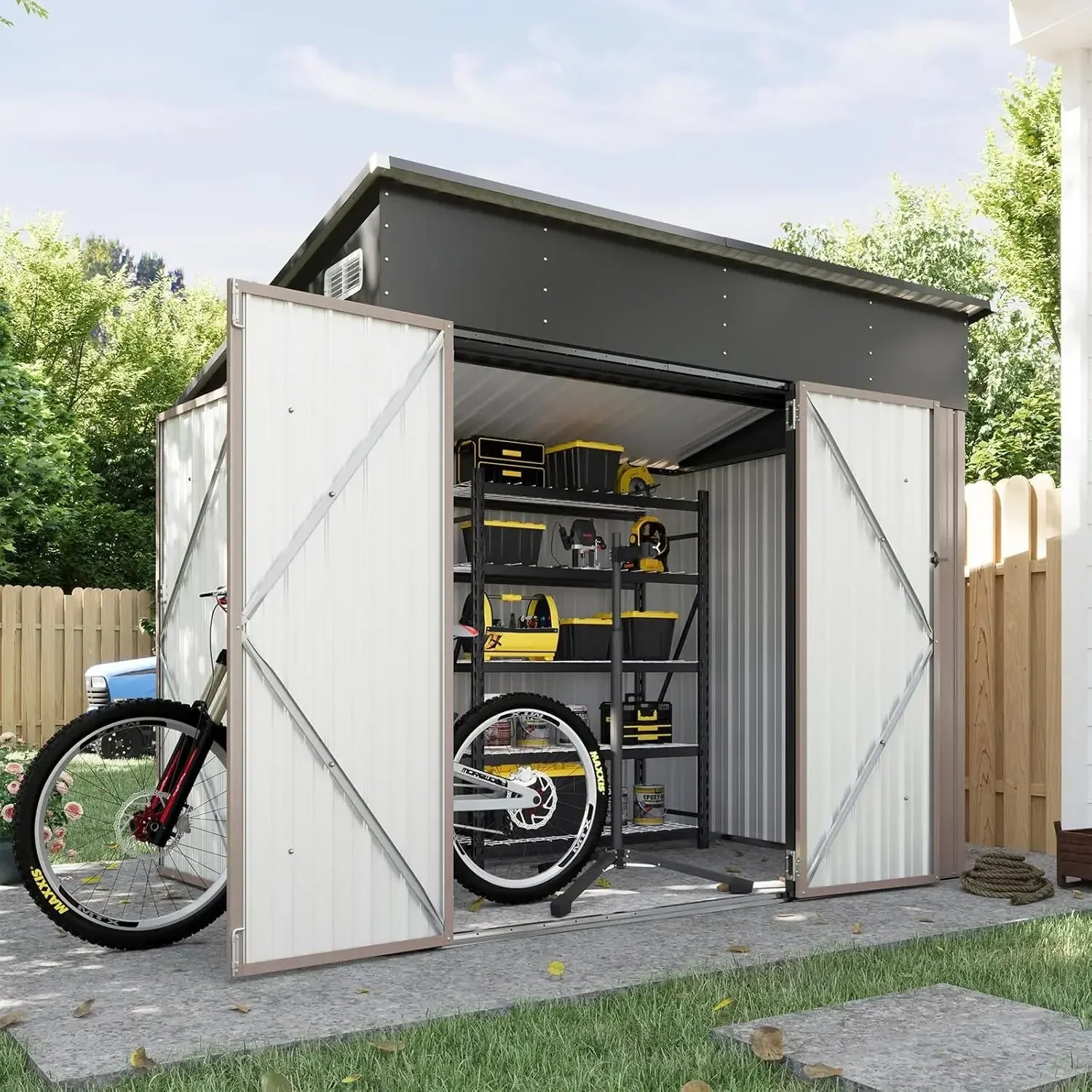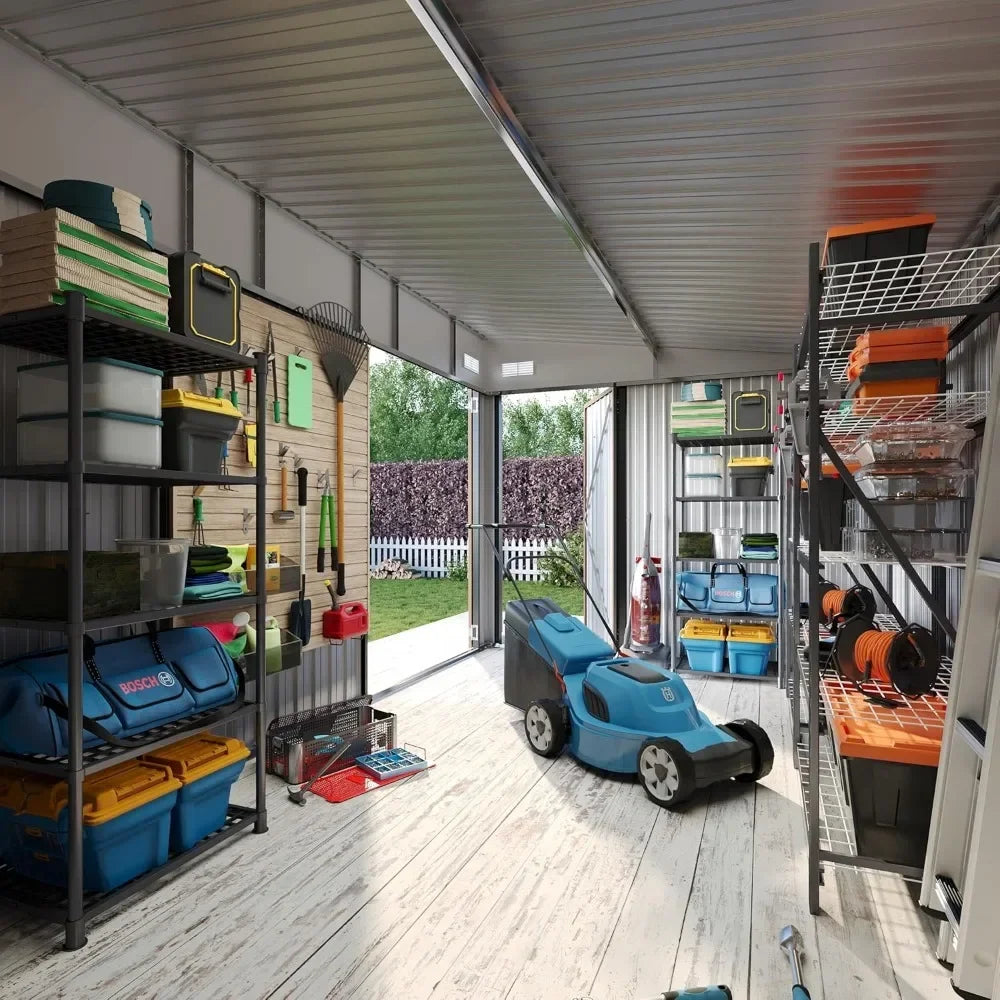 Uses: Tool storage, bicycle storage, garden equipment storage, seasonal storage