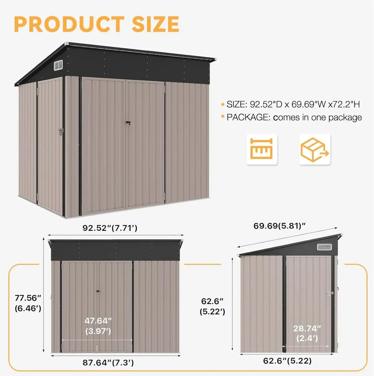 Perfect for homes, garages, or commercial use, this shed is designed for easy assembly, strong structural stability, and long-term outdoor use. Keep your tools safe, your yard tidy, and your belongings protected in style.