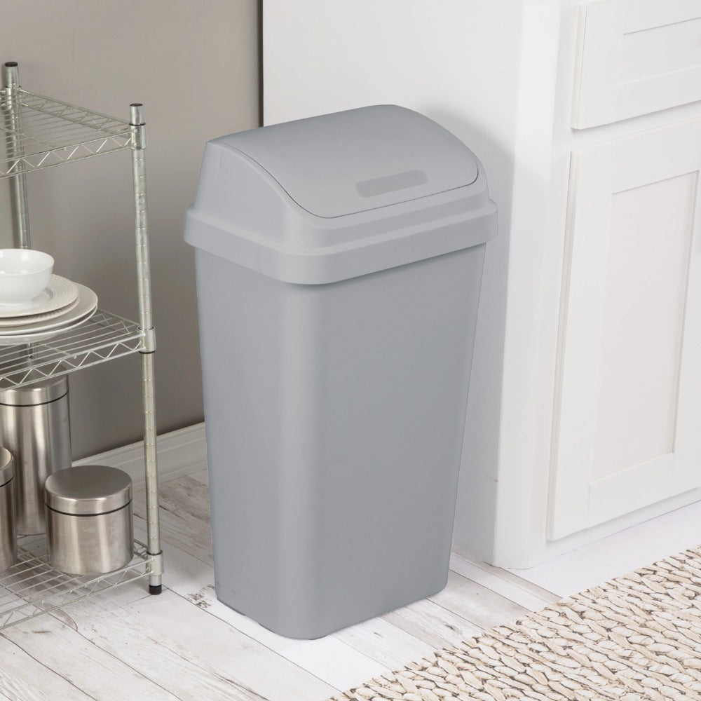 Keep your home clean and organized with the 13 Gallon Large Capacity Plastic Twist Top Kitchen Trash Can. With its modern design, swing-top lid, odor-resistant properties, and space-saving shape, it’s the perfect waste management solution for any room. Experience a stylish and functional way to handle household waste—order yours today!