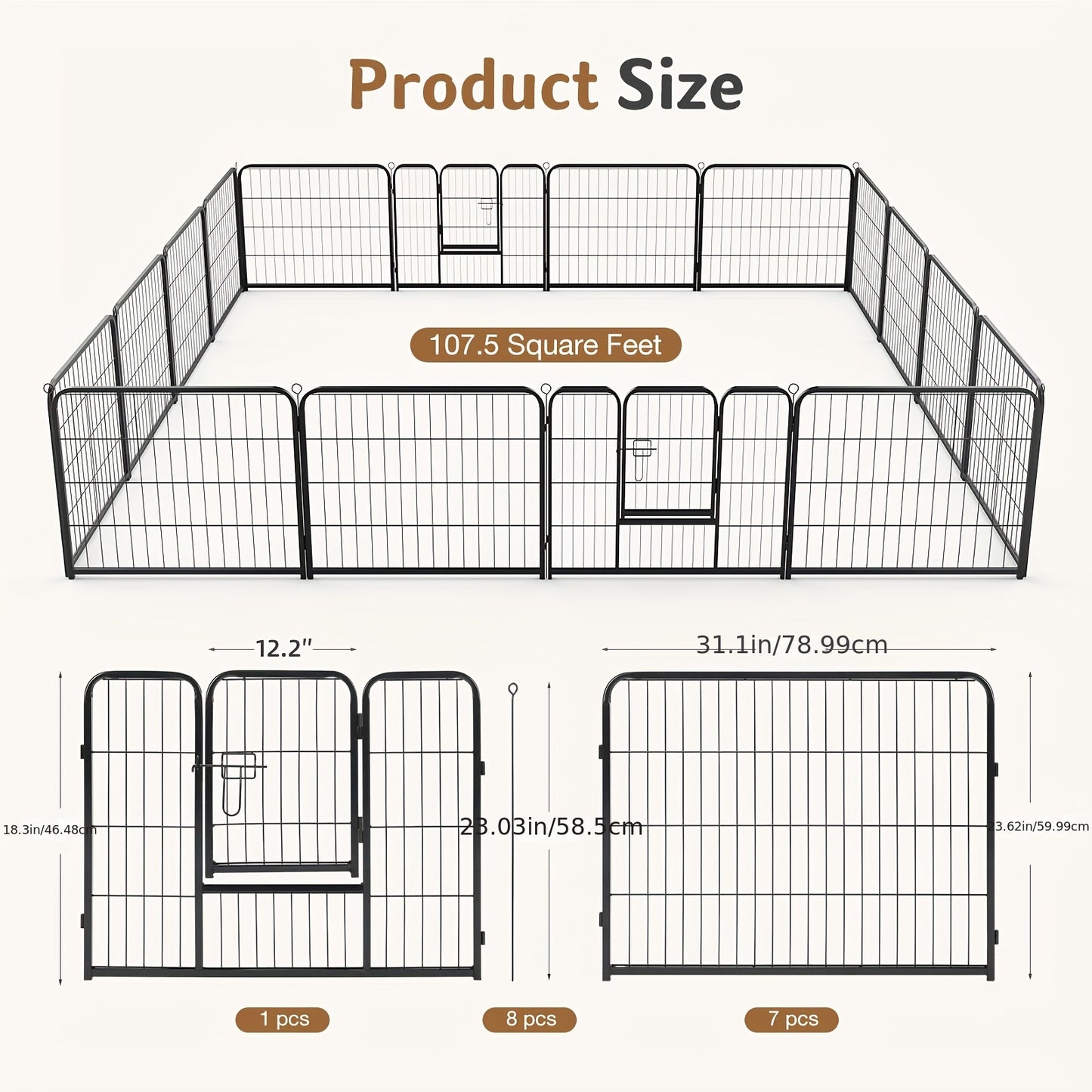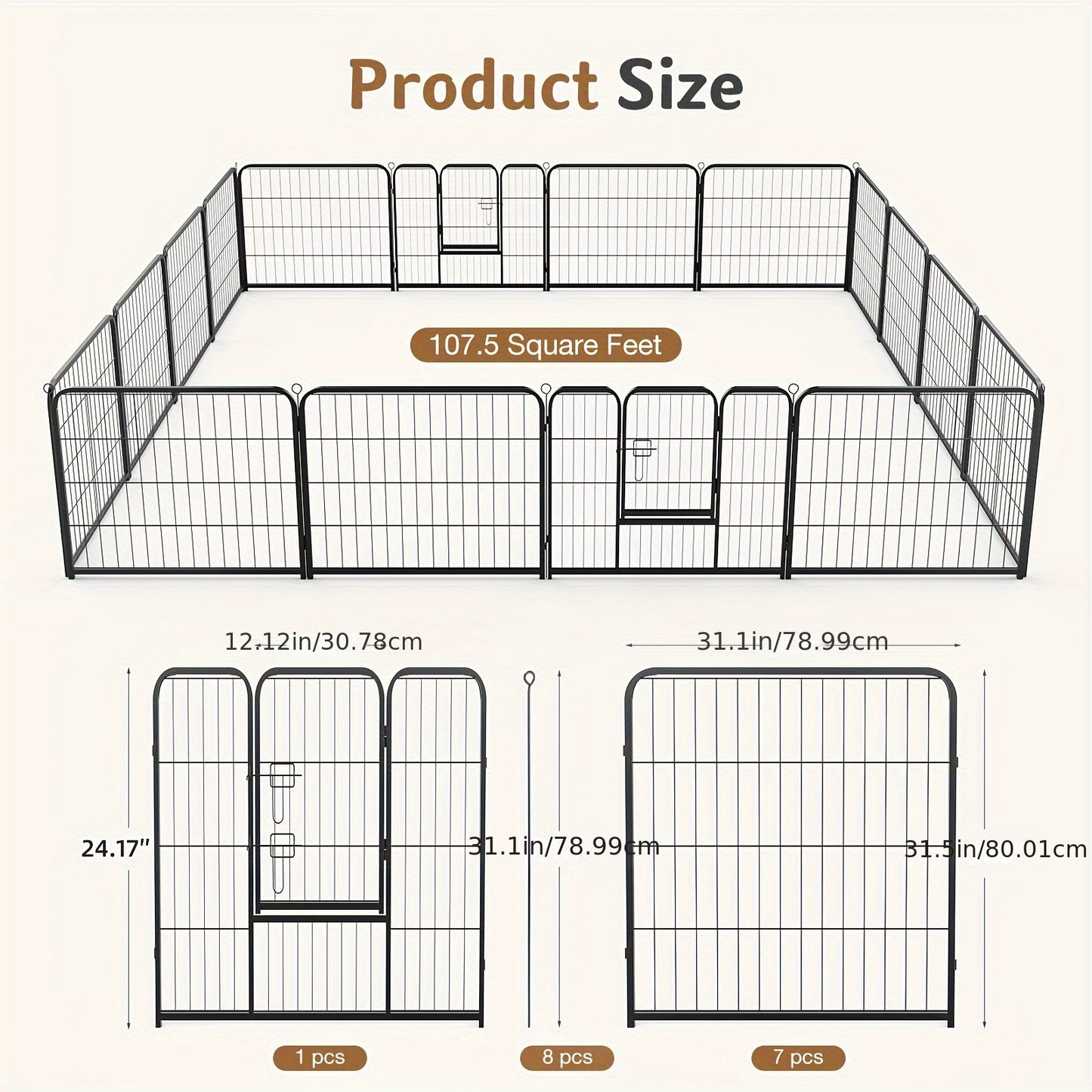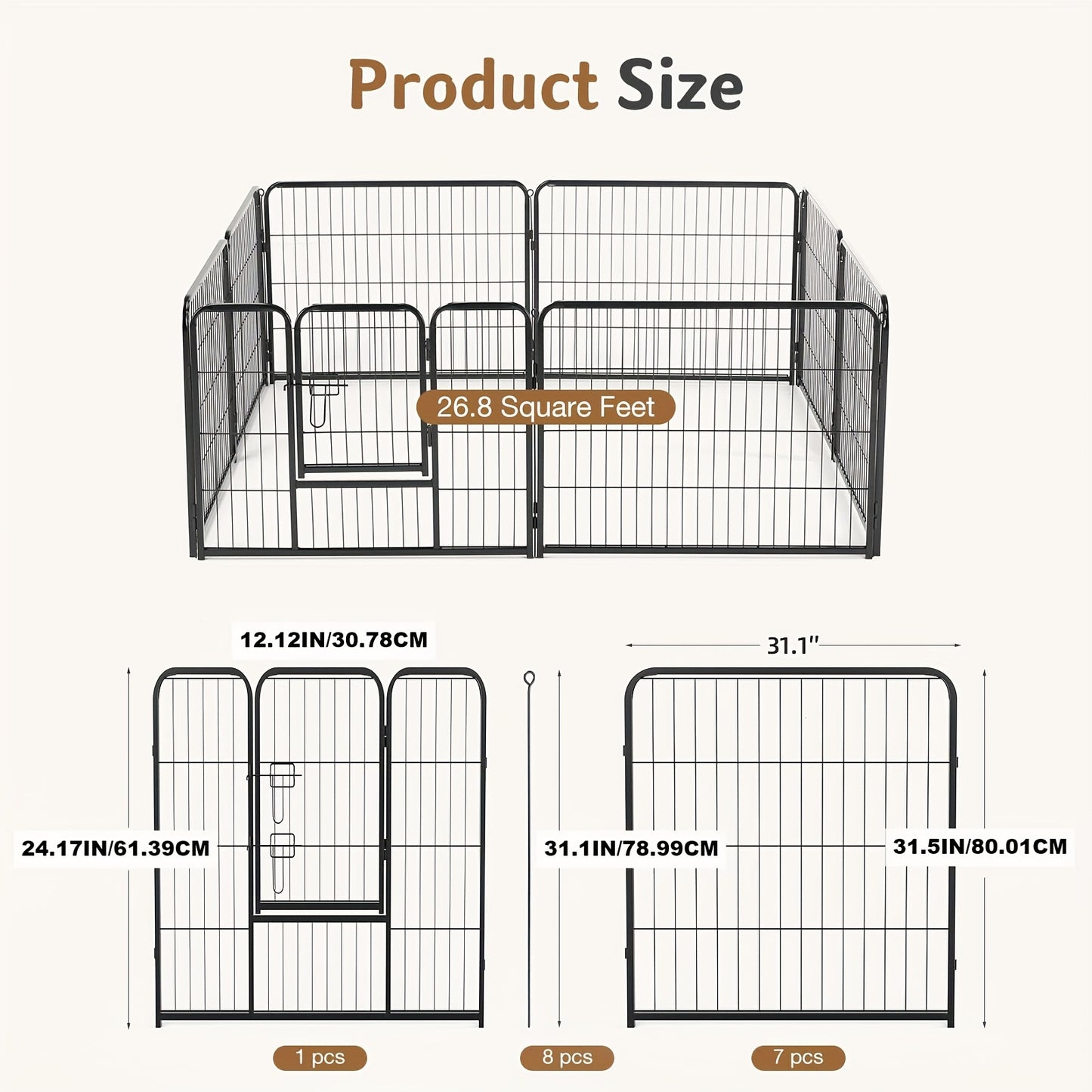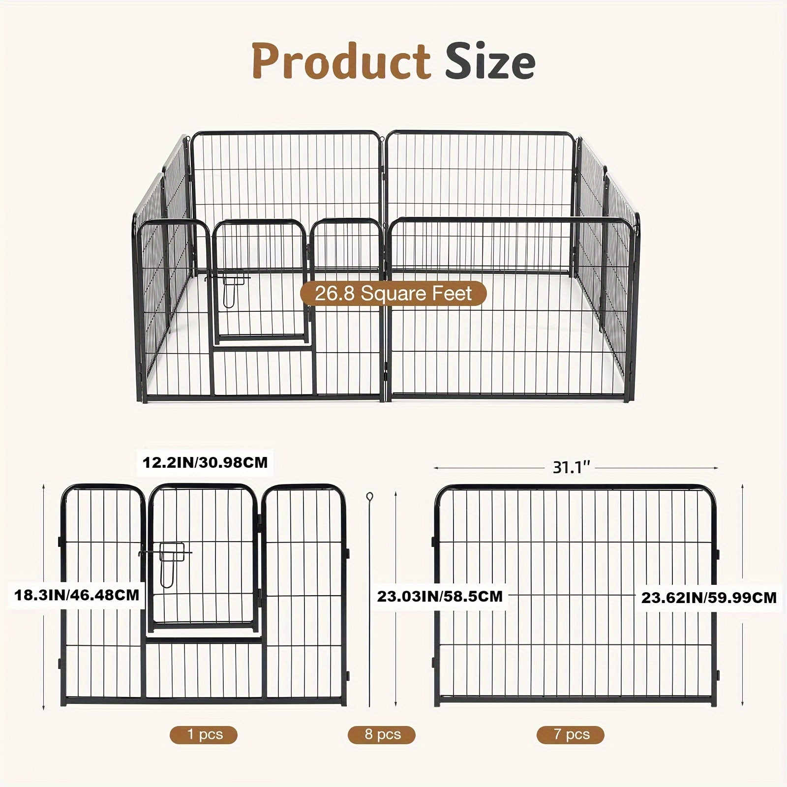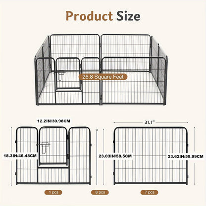 Safe and Secure Environment: Keep your pets safe with this sturdy metal fence, designed to provide a secure environment for play and exercise. The pen’s sturdy construction and secure locking mechanism give you peace of mind knowing your pets are protected.