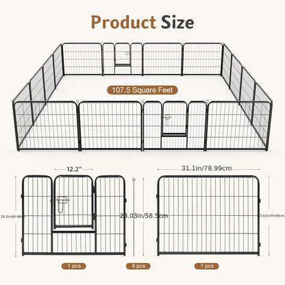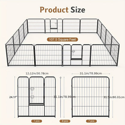 Spacious 16-Panel Design: With 16 panels, this playpen provides ample space for your pets to play, exercise, and relax. The modular design allows you to customize the shape and size of the play area, adapting it to fit any space in your home, yard, or garden.