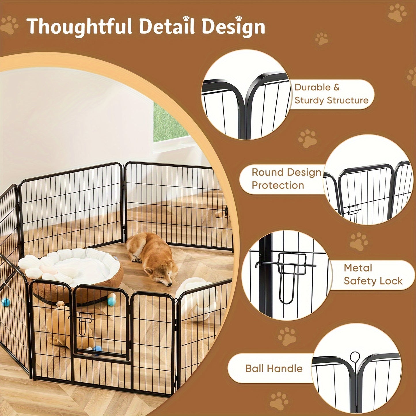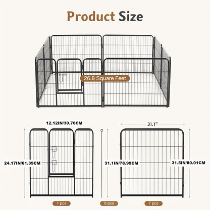 Durable Metal Construction: Made from high-quality iron, this dog playpen offers robust durability and stability, ensuring it stands up to active pets. The metal panels are designed to resist rust and wear, making it suitable for both indoor and outdoor use.