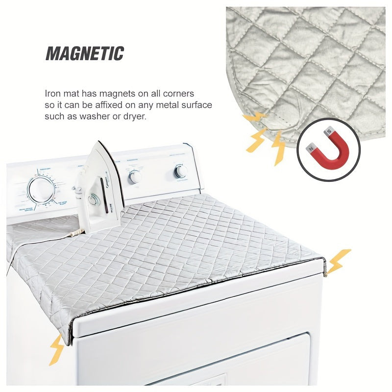 Magnetic Corners for Stability on Metal Surfaces: Designed with magnetic corners, this mat stays securely in place on metal surfaces like washers and dryers, preventing unwanted movement during ironing. This feature provides added stability and convenience for quick touch-ups or more intensive ironing sessions.