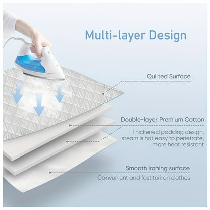 Thick Cotton-Coated Surface for Safe, Effective Ironing: The deluxe ironing mat is crafted with a thick cotton coating that ensures a smooth, safe surface for ironing. Its silver finish enhances heat resistance, helping to evenly distribute heat and prevent scorching, ensuring perfectly pressed clothes every time.