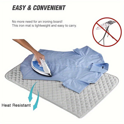 Heat-Resistant Pad for Versatile Use: The integrated heat-resistant pad ensures safe use with all types of irons, making this mat versatile for different ironing needs. Use it on your desktop, countertop, or any flat surface for a quick and efficient ironing experience.