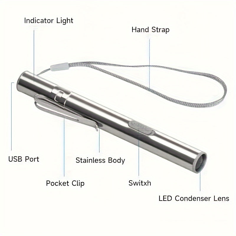 Light up your world with this compact yet powerful USB rechargeable flashlight. Whether you need a dependable flashlight for outdoor exploration or emergency situations, the Mini Penlight Lamp offers all the brightness you need in a portable package.