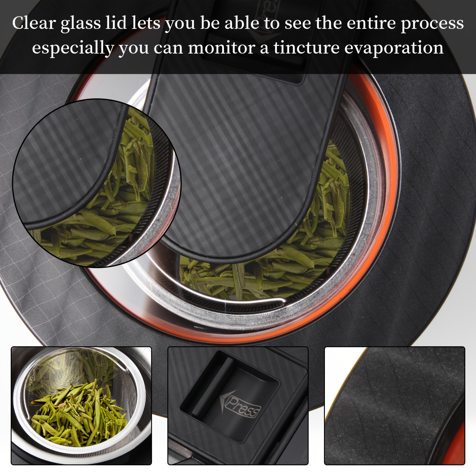 - Easy to Use, Set It and Forget It: Simply add your ingredients, select your settings, and let the HerbAbility Pro do the rest! The clear lid allows you to watch the infusion process, ensuring everything is on track for a perfect batch.