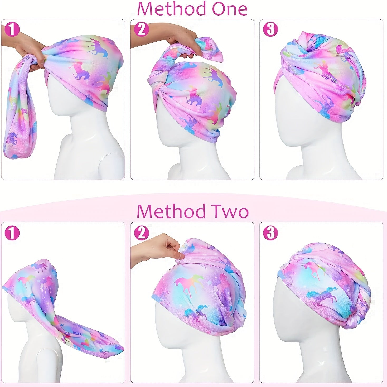 Soft and Absorbent Microfiber Cartoon Hair Towel Wrap - Quick Dry, Button Closure, Fun Patterned Design for Kids and Women - Bathroom Essentials