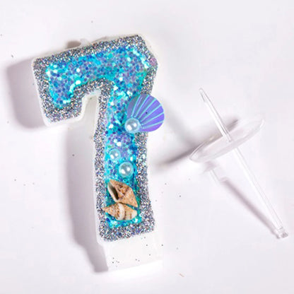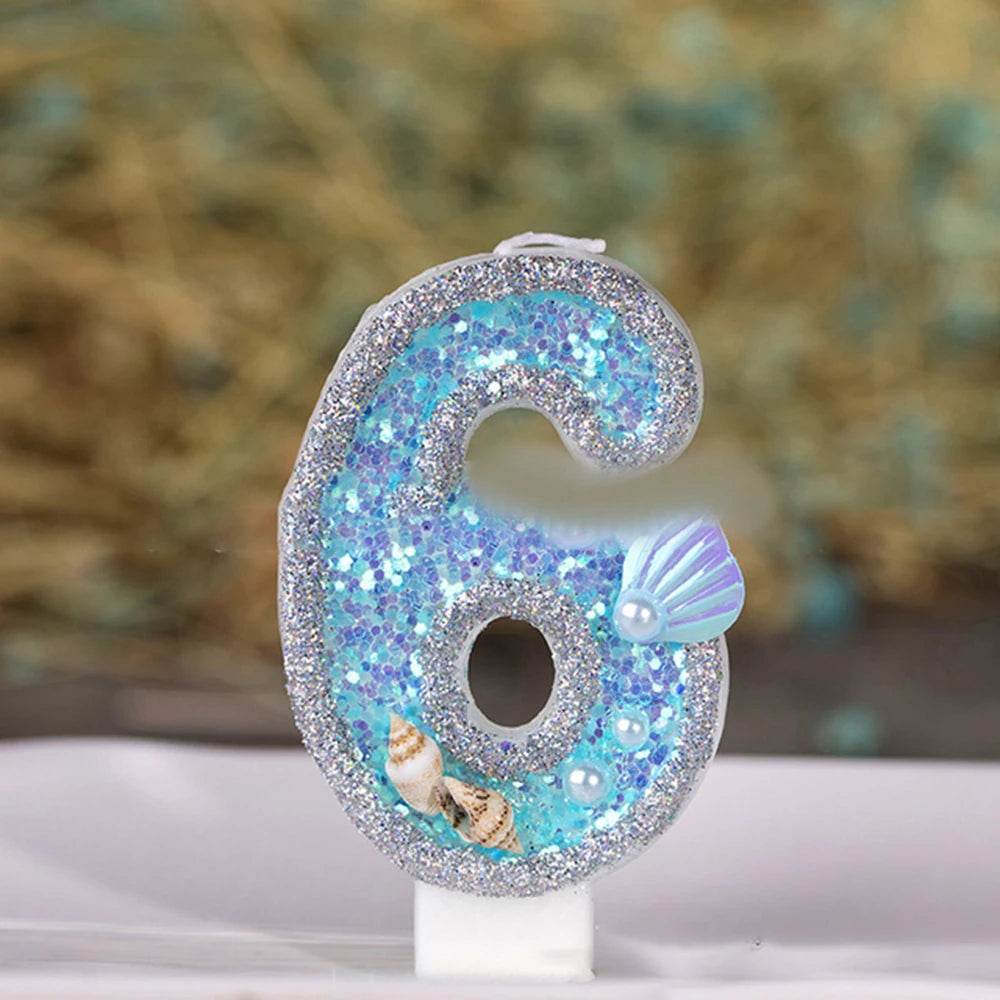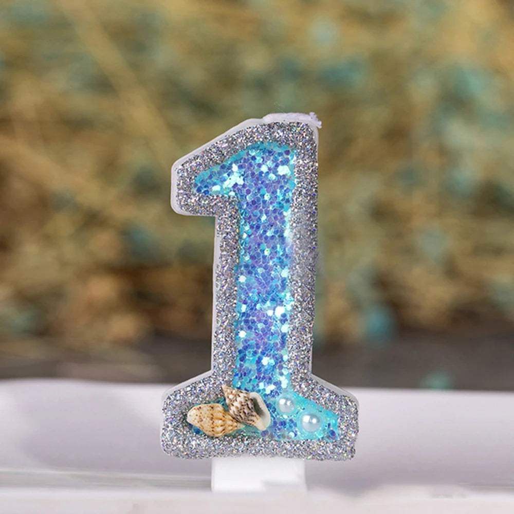 1Pcs Blue Shell Glitter Number Candle - Birthday Cake Topper, Wedding Digital Dessert Decor for Celebration, Birthday Decoration