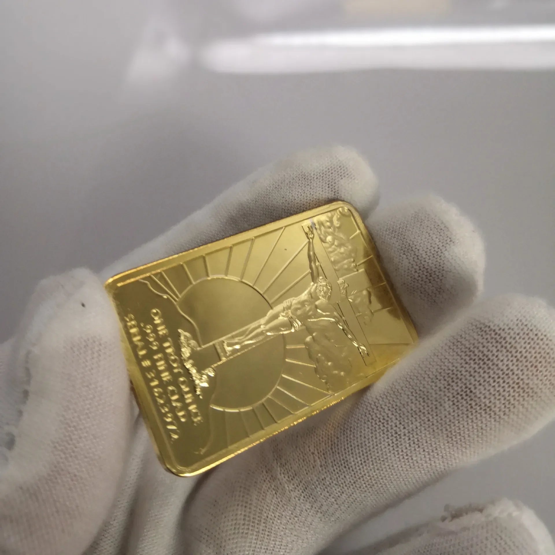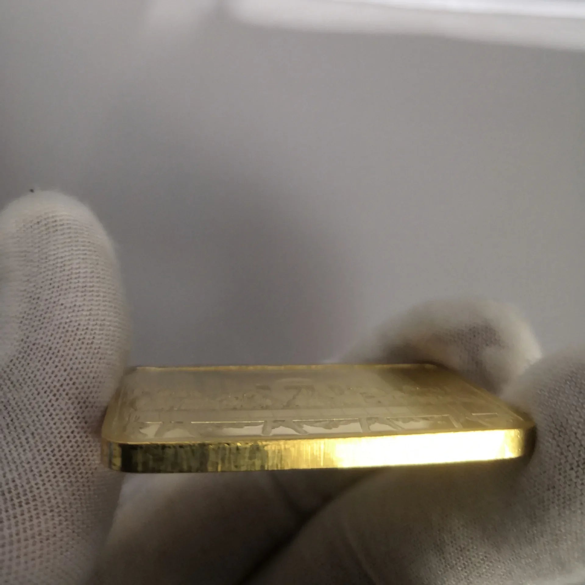 Made from high-quality iron plated with gold or silver, this retro-style replica measures 45 × 29 × 3 mm and weighs nearly 29 grams, making it a substantial yet collectible piece. Each bar comes with a protective plastic case, keeping your replica safe while showcasing its intricate details.