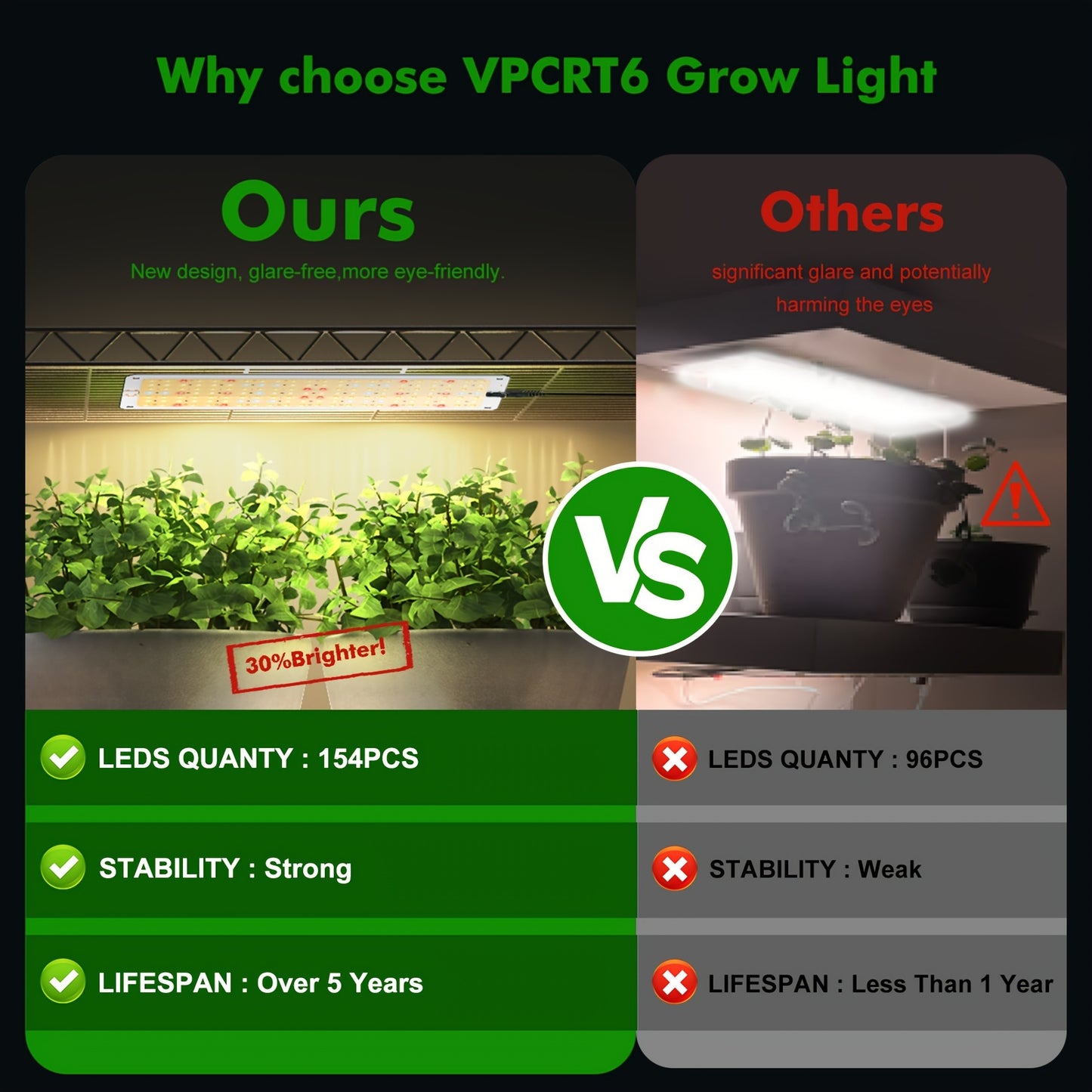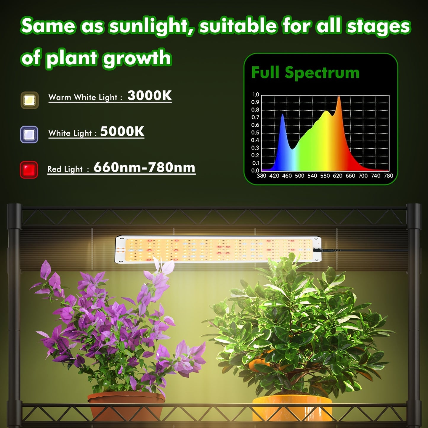 Full Spectrum LED for Optimal Plant Growth: These grow light bars feature 154 full spectrum LEDs that provide a balanced blend of light similar to natural sunlight. This promotes photosynthesis, seed germination, growth, and blooming, ensuring your indoor plants get the light they need to flourish.