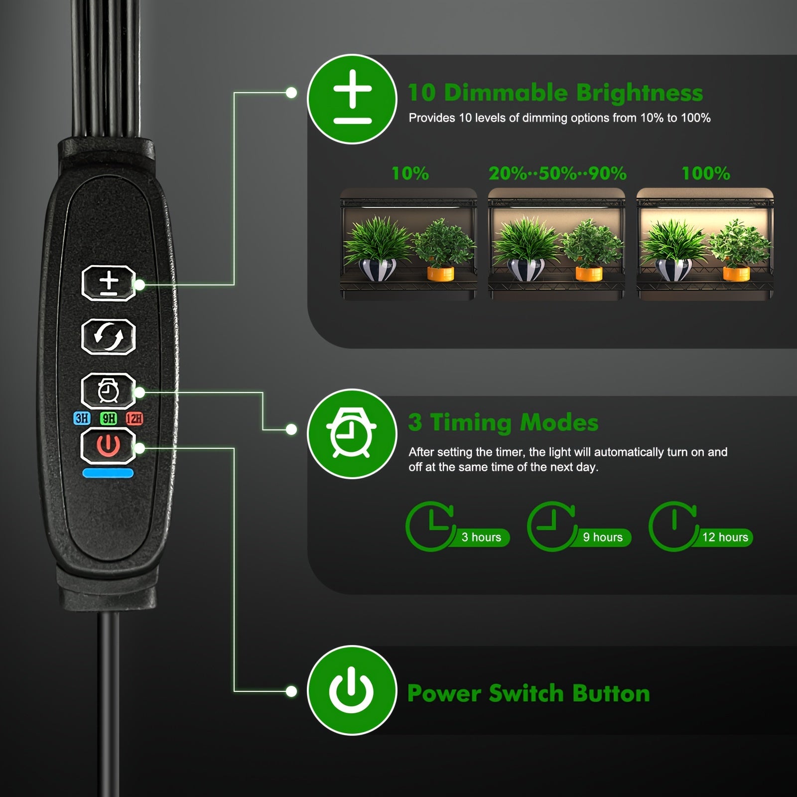 10 Adjustable Brightness Levels: Customize the intensity of the light with 10 brightness levels, ensuring the perfect amount of light for each type of plant. From low-light houseplants to high-light succulents, you can easily adjust the brightness to suit each plant's requirements.