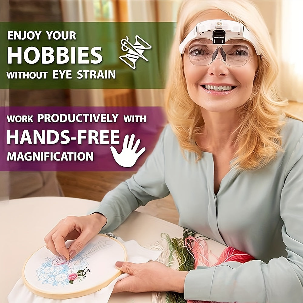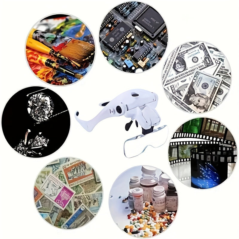 Hands-Free Convenience: Designed with a comfortable headband, this magnifier ensures hands-free operation, allowing you to focus on your work without holding a magnifying glass. It's ideal for tasks that require precision, such as electronics repair, watchmaking, model building, or reading small text.