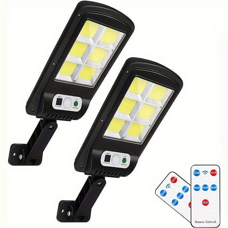 2 Packs Solar-Powered Remote Control LED Street Lights – Wall Lights with 3 Modes, Wireless Motion Sensor, Adjustable Brightness – Ideal for Garden, Street, Deck, Yard, Garage, Patio