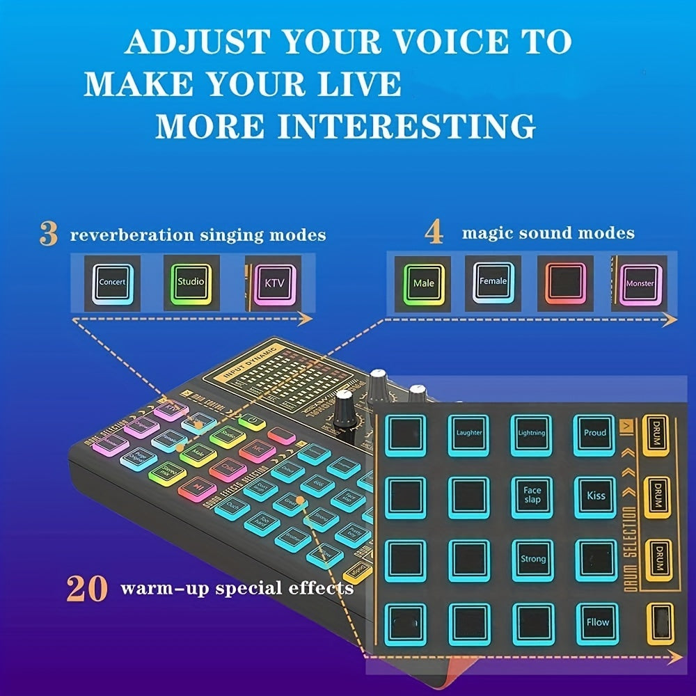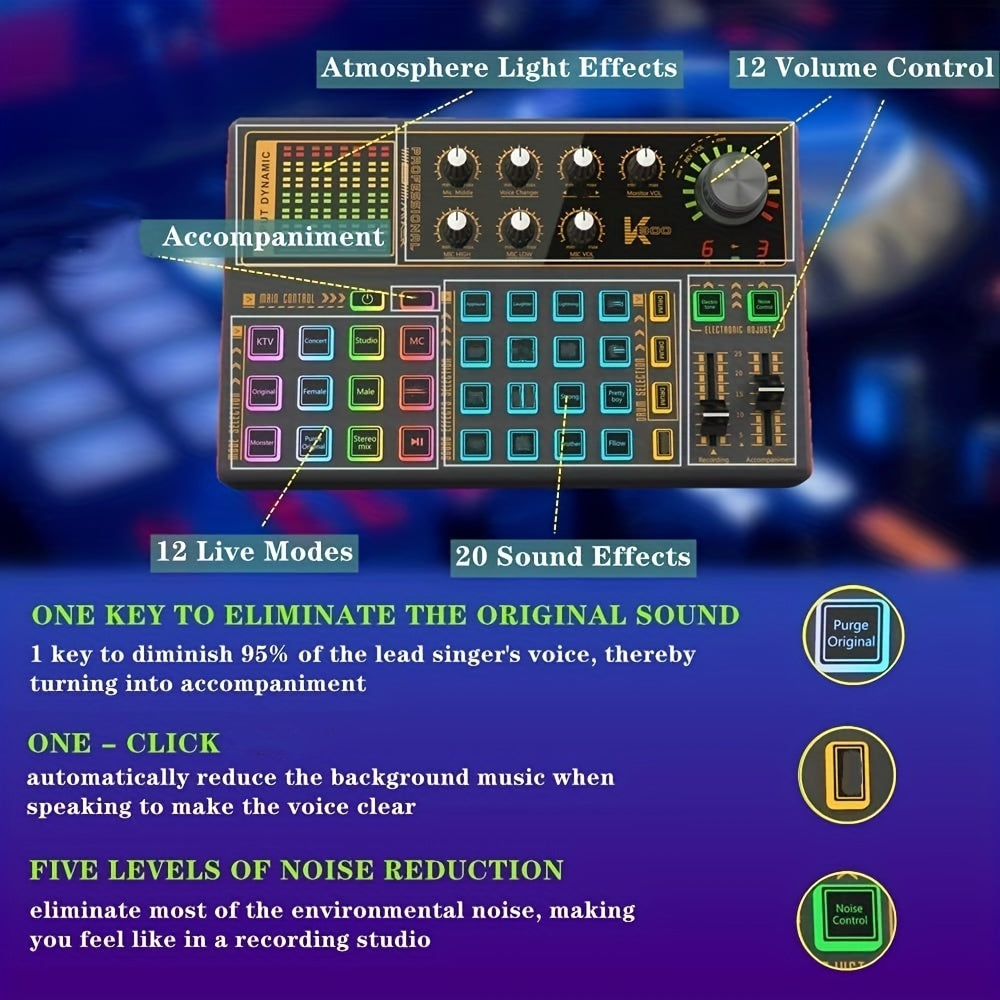 - Live Sound Card: Enhance your sound with volume control, sound effects, and seamless audio mixing.