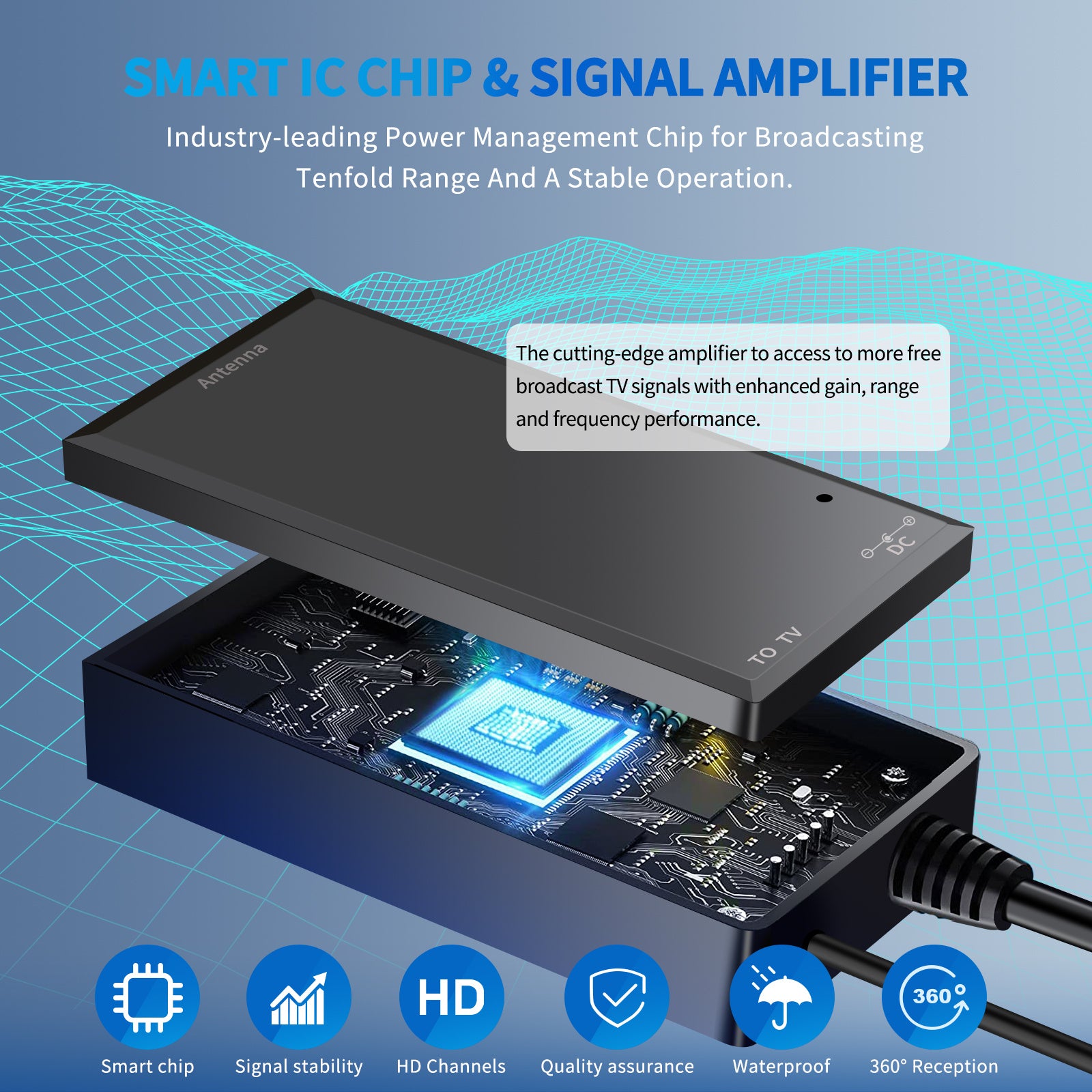 Full HD Picture Quality with Upgraded Smart IC Chip: Experience sharp, vibrant images and crystal-clear sound with this antenna’s enhanced IC chip, capable of picking up 4K, UHD, and 1080P broadcasts. From local news to sports and popular series, you’ll get it all in stunning quality.