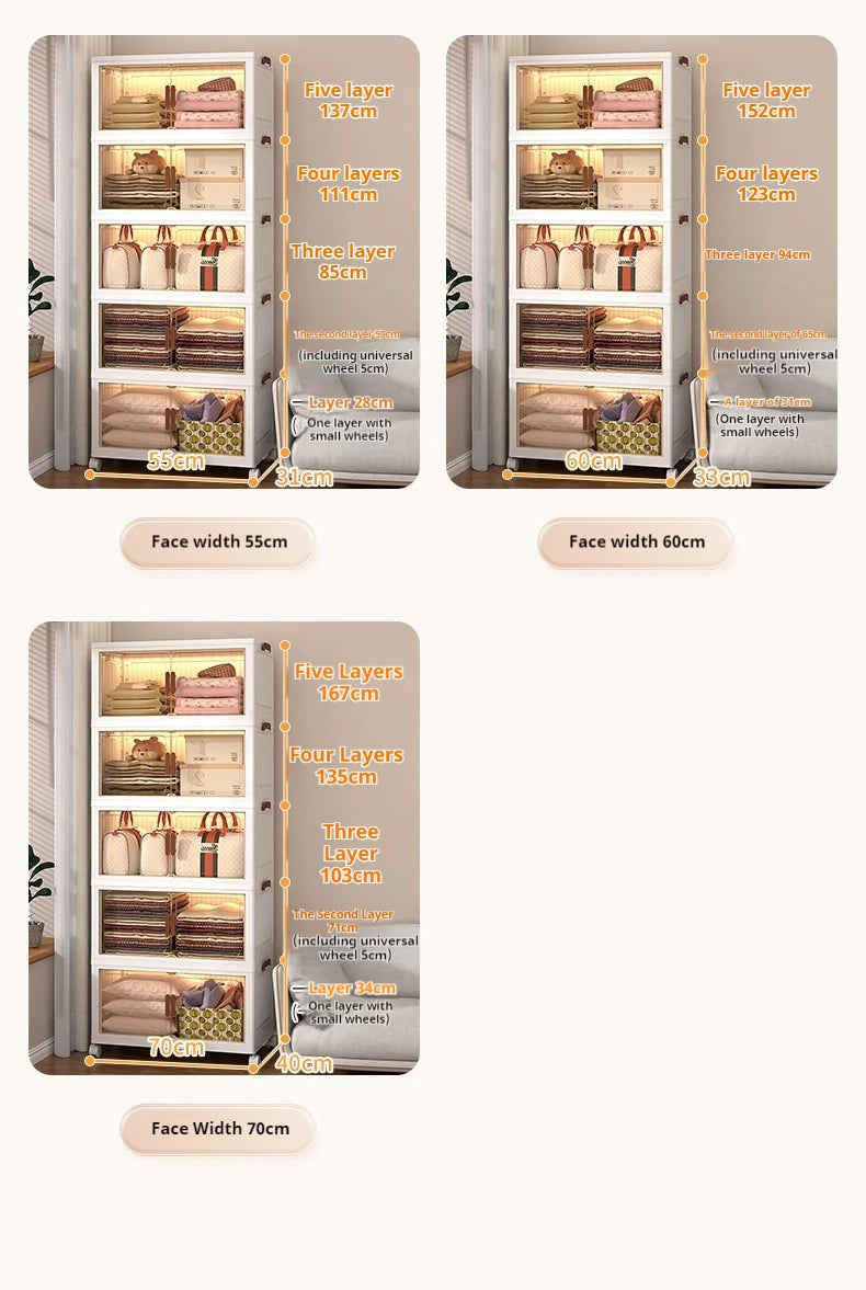 2025 Folding Living Room Cabinet – Multifunction Rolling Closet Organizer with Large Capacity Storage