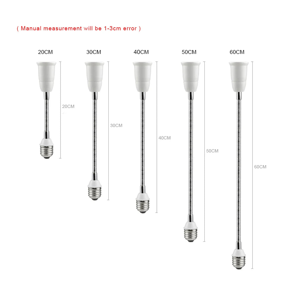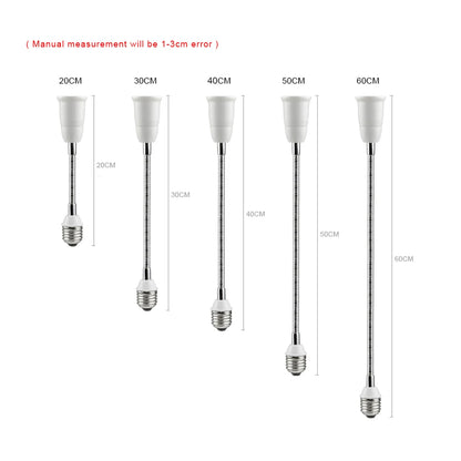 Flexible E27 to E27 LED Bulb Extension Lamp Holder Light Socket Converter - 20CM to 60CM Length - 110V-220V