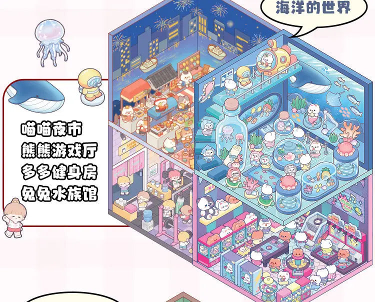 Each set includes 20 unique sticker sheets featuring whimsical cartoon landscapes and pocket cabin scenes. Perfect for hours of creative exploration and storytelling. -