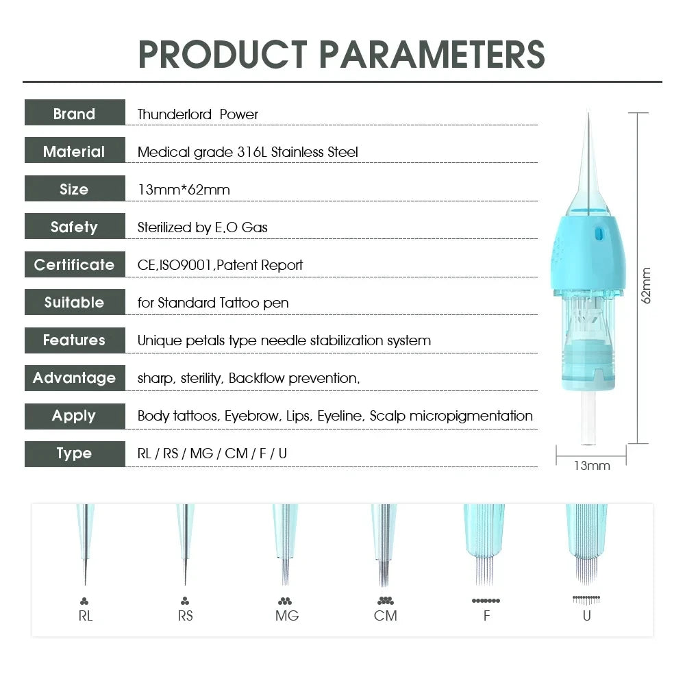 Made from high-quality 316 stainless steel, these cartridges deliver ultra-precise strokes ideal for lips, eyeliner, brows, liners, and body tattoos. Whether you’re perfecting soft shading or executing crisp micro-details, this set has you covered with multiple types: 1R, 3RL, 7F, 11U, and ultra-fine 0.16/0.18mm options.