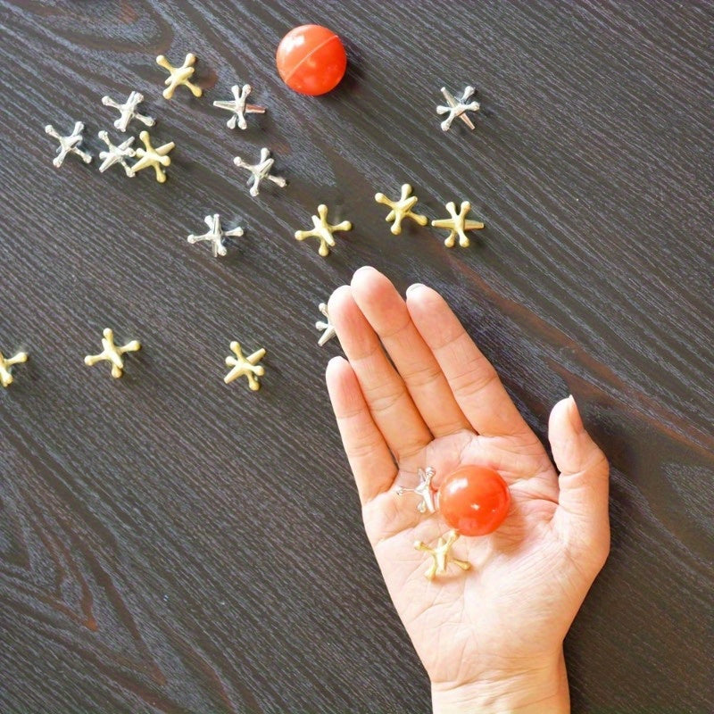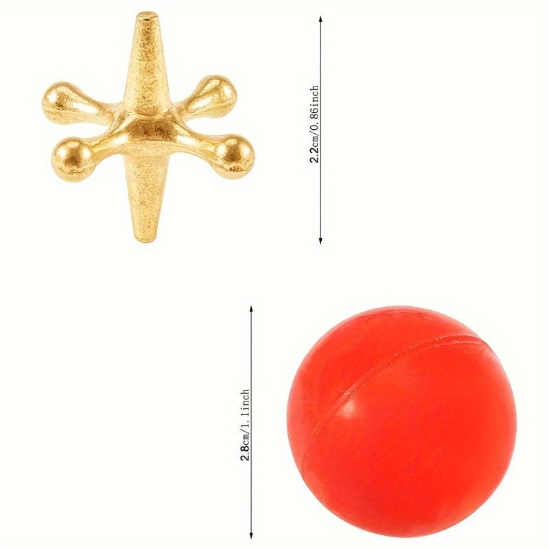 - Retro Metal Design: Featuring golden metal jacks and durable metal balls, this game set is crafted to last and offers a stylish, vintage look. The metallic finish brings a bit of elegance to the classic floor game, making it perfect for both play and display.