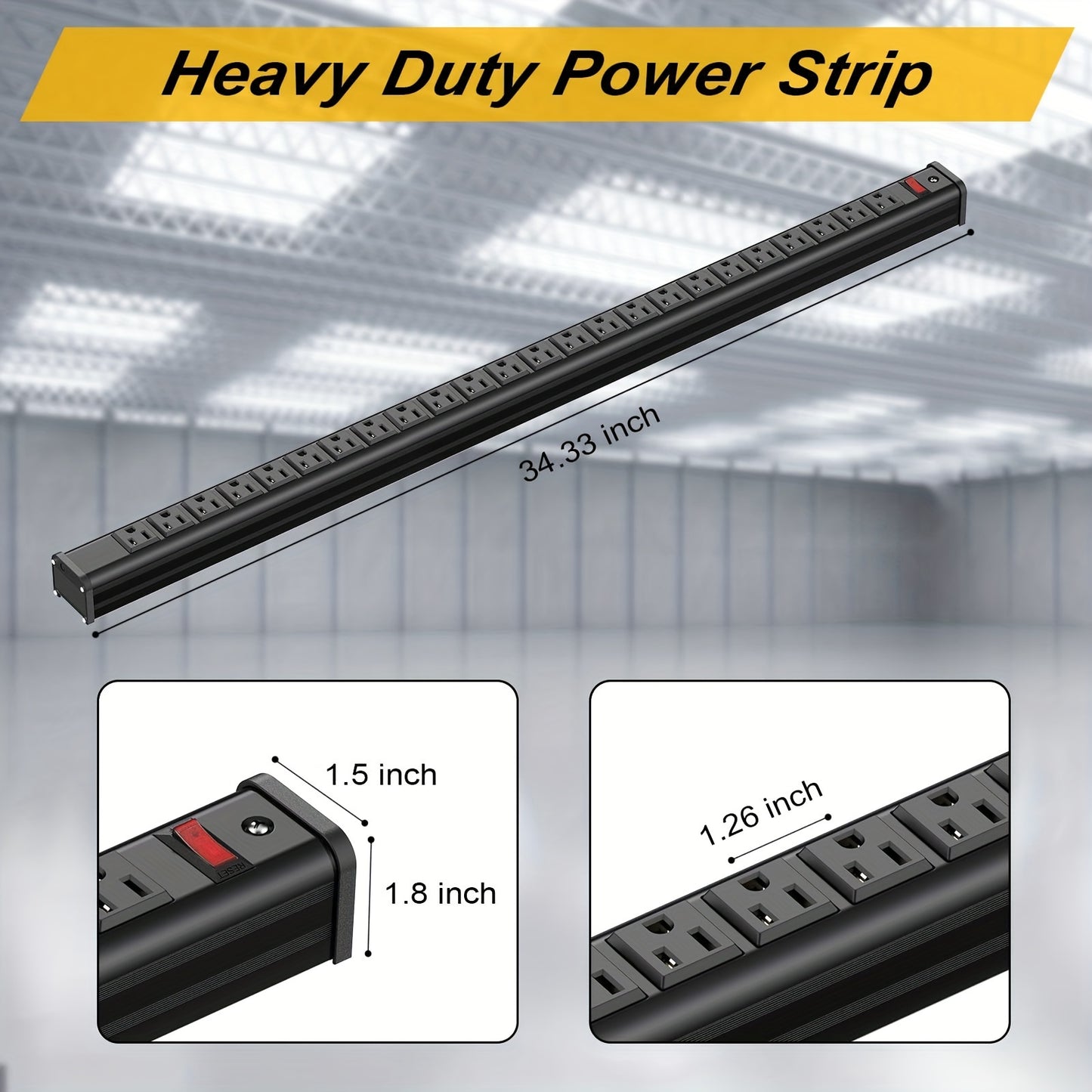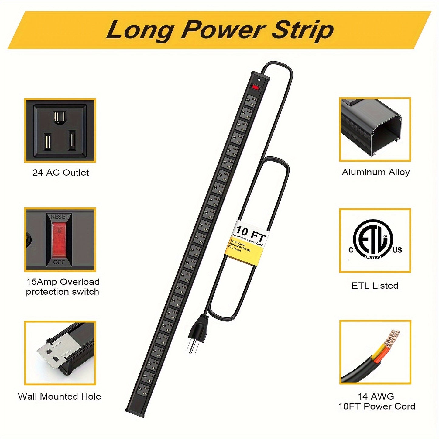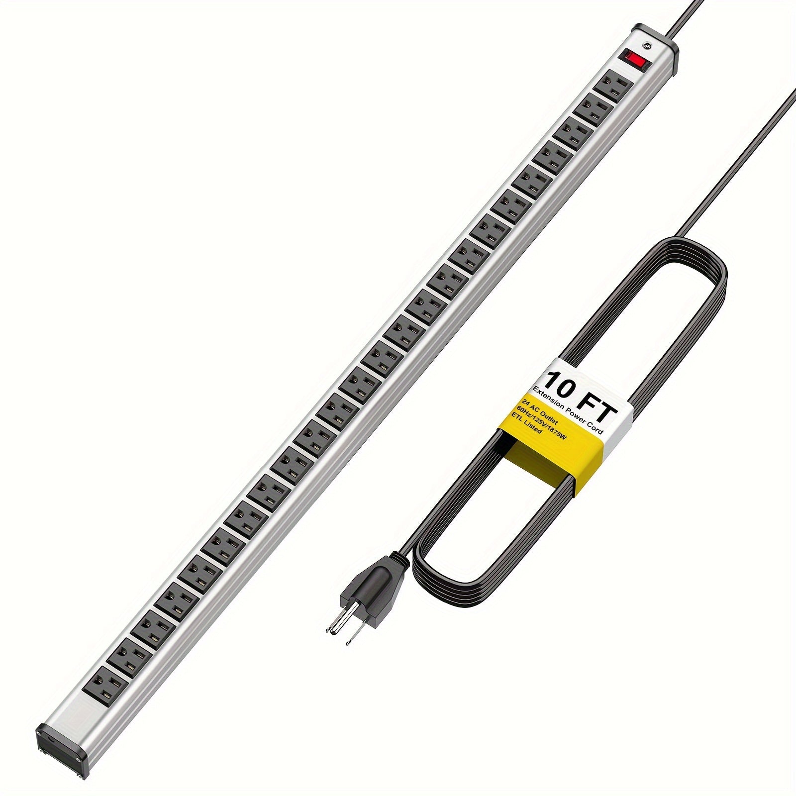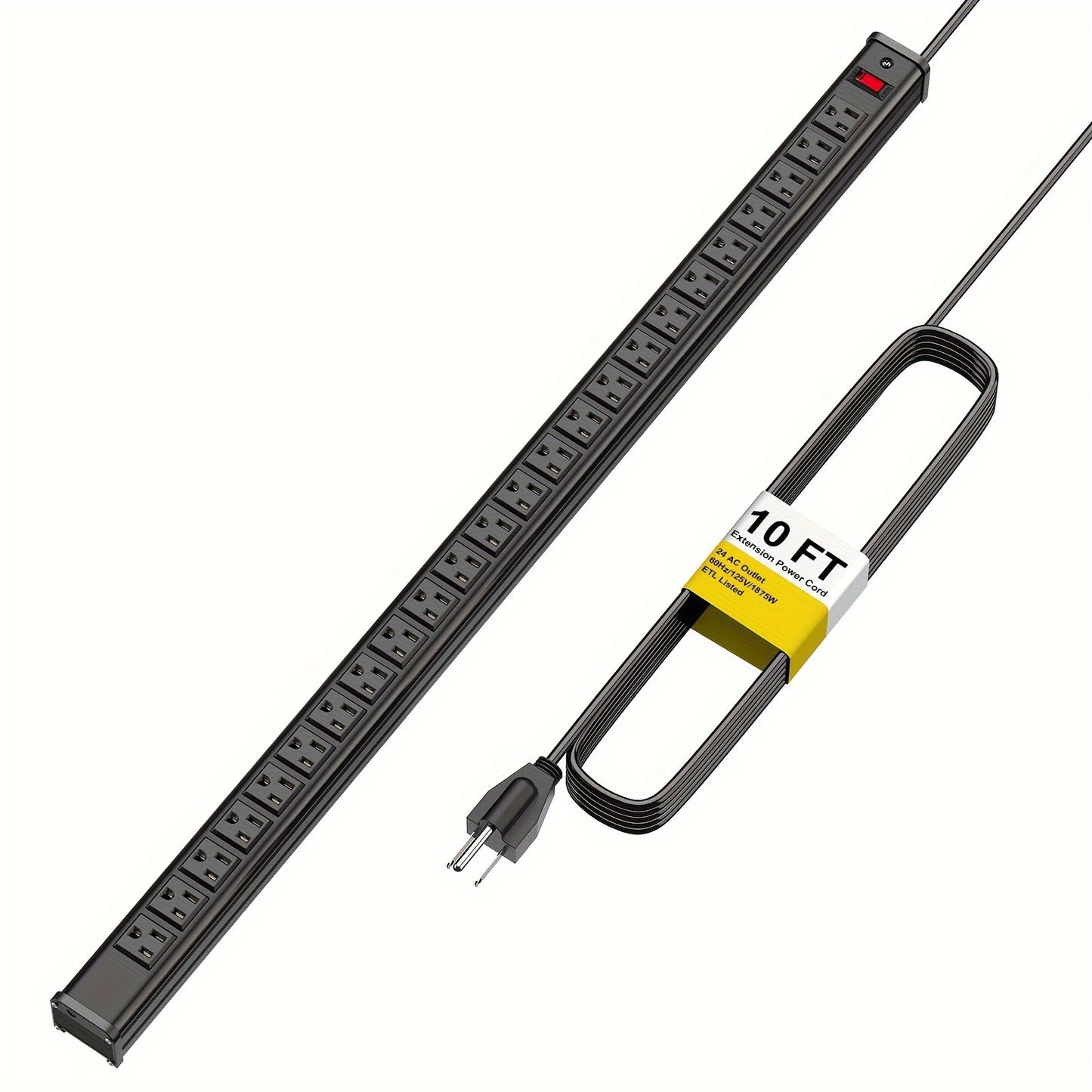 Power up all your devices with the 24-Outlet Heavy Duty Metal Power Strip—a robust and versatile power solution designed to meet the demands of industrial, commercial, and home settings. Featuring 24 right-angle AC outlets, a 10-foot long extension cord, surge protection, and a sleek, space-saving design, this power strip provides reliable power distribution for all your electronic devices. Ideal for use in offices, studios, workshops, garages, and more!
