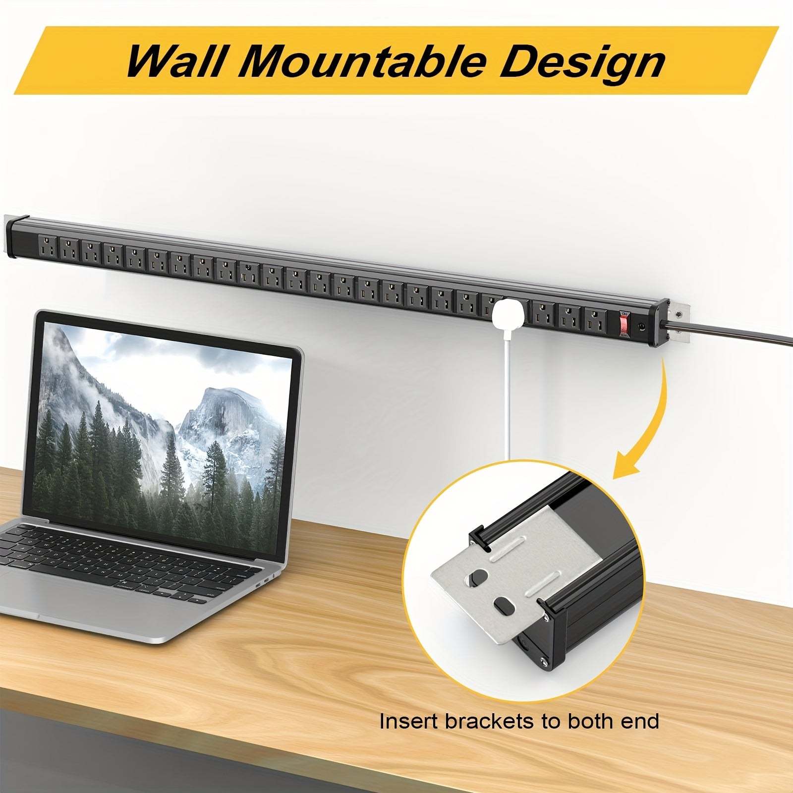 Wall Mountable for Space-Saving Convenience: Designed with space efficiency in mind, this power strip includes two mounting brackets for easy horizontal or vertical installation. Mount it under desks, on cabinets, or along shelves to keep your workbench, gaming room, or office neat and organized.
