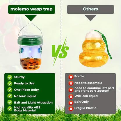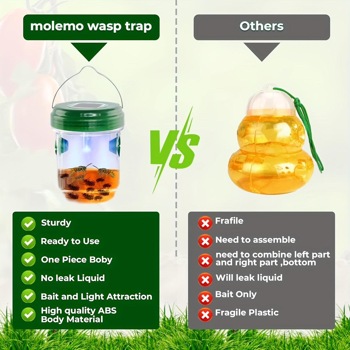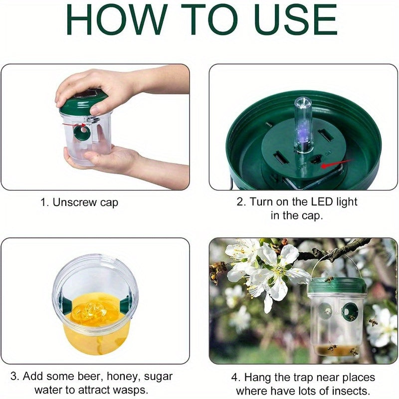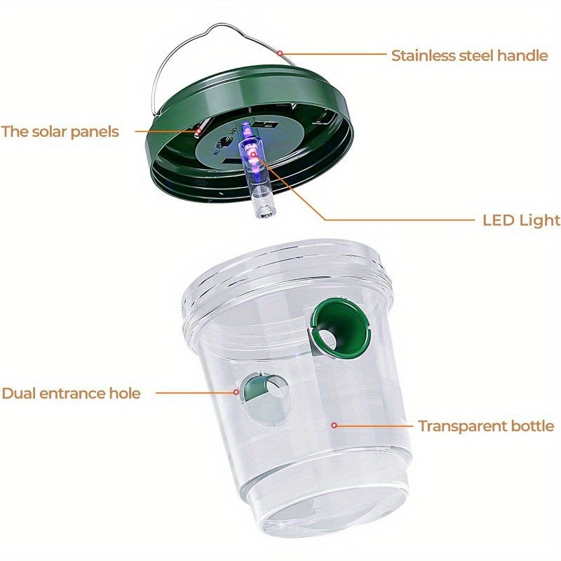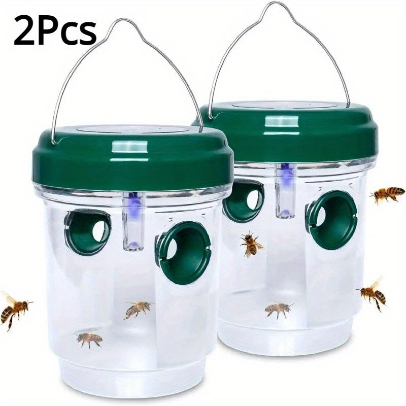 Protect your outdoor spaces from annoying insects with the 2pcs Solar-Powered Wasp Traps with UV LED Light. Combining solar power, UV technology, and a durable, reusable design, these traps provide an eco-friendly and effective way to keep your surroundings safe and comfortable.
