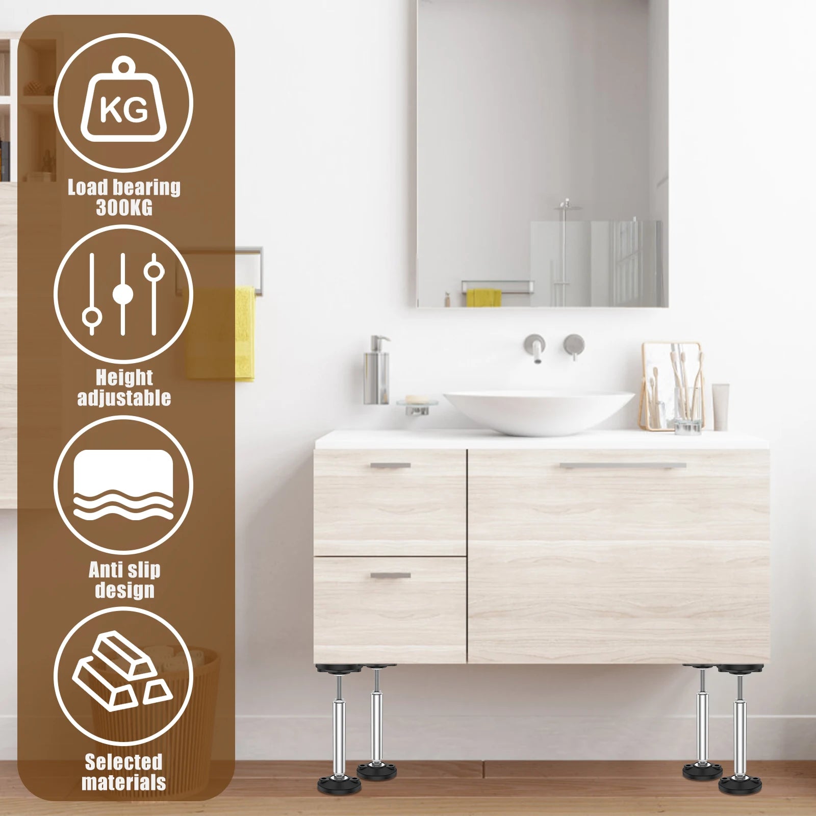 Heavy Load Capacity: Supports up to an impressive 300kg, perfect for heavy furniture like kitchen cabinets, TV stands, bathroom vanities, and more.
