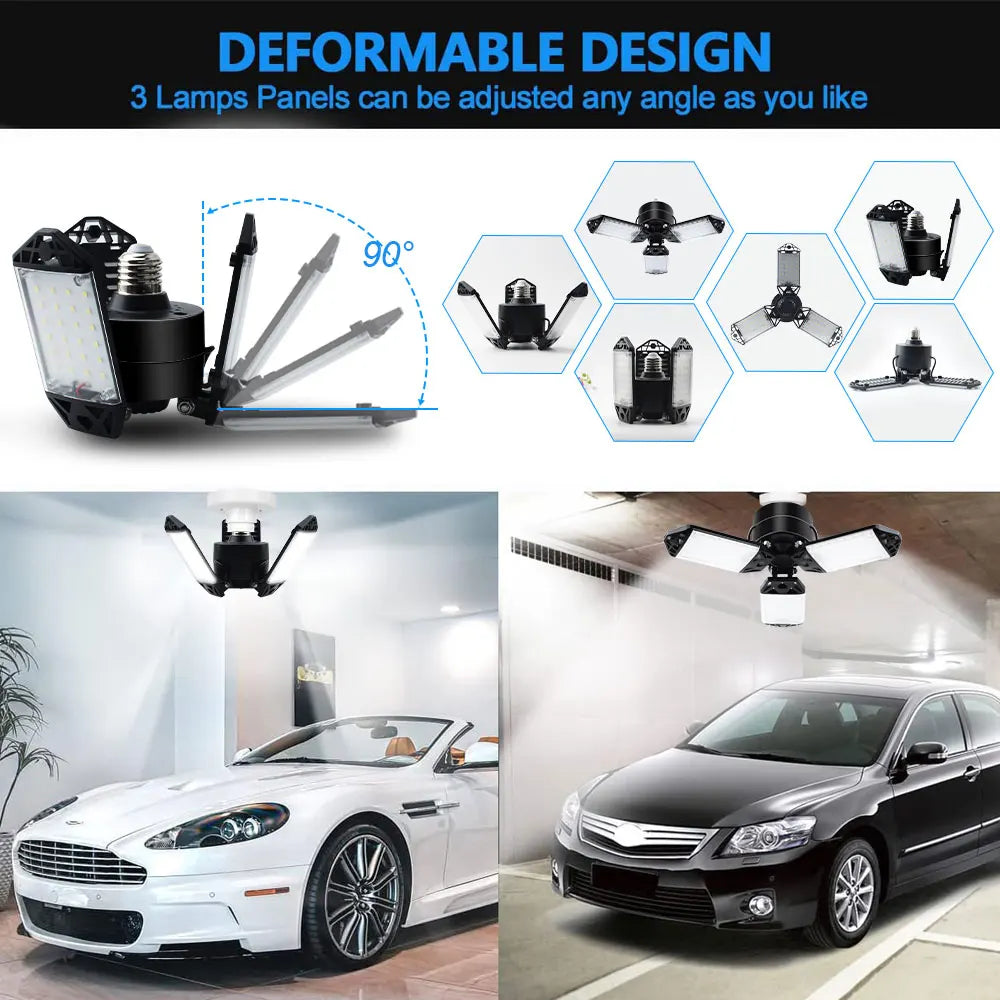 Transform your workspace into a brightly lit haven with the Deformable LED Garage Light. Its unparalleled brightness, energy efficiency, and adjustable design make it a superior choice for anyone looking to enhance their lighting setup. Say goodbye to dim, shadowy areas and hello to clear, vibrant illumination that covers every corner of your space.