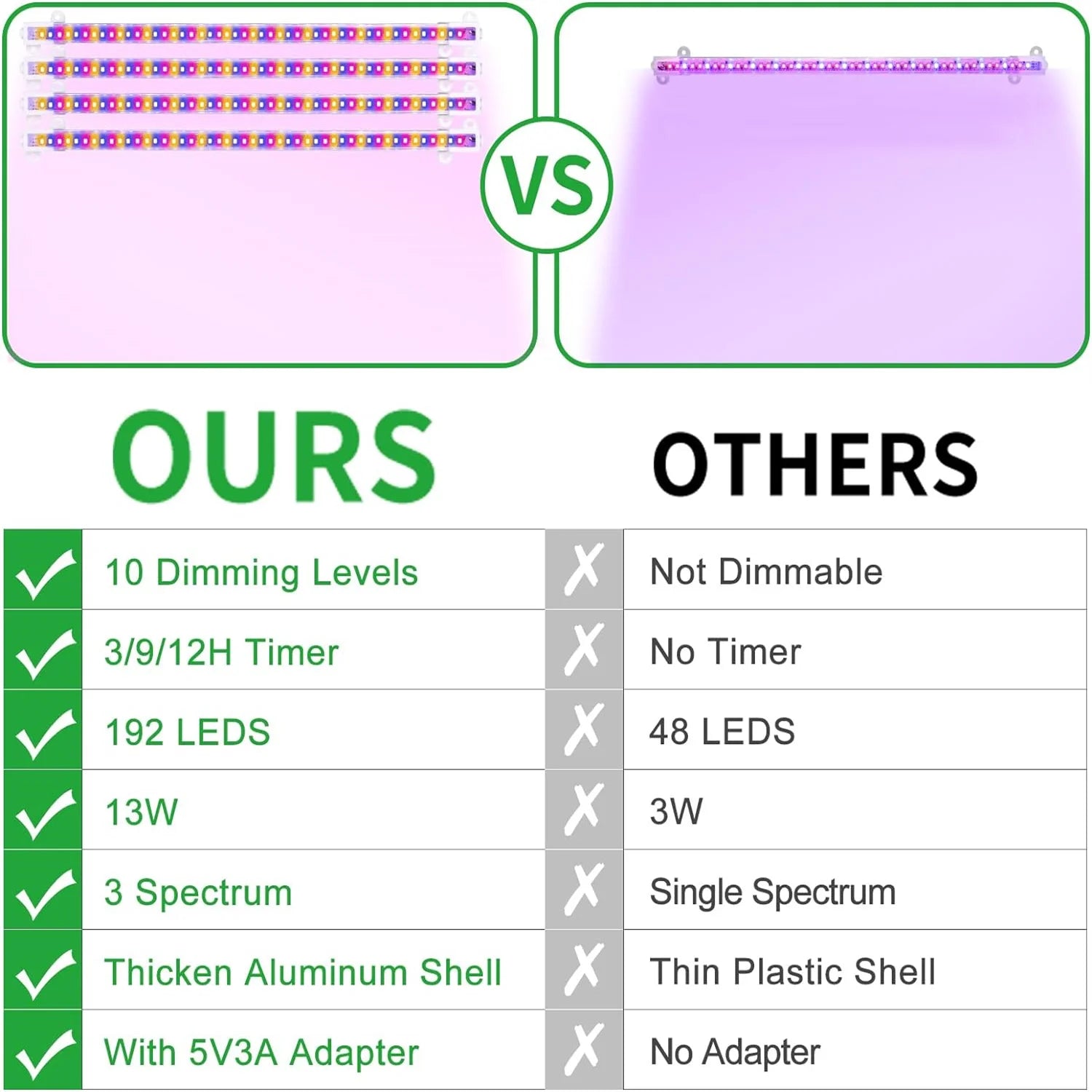 Dimmable & Adjustable: Customize light intensity to suit different plants or growth stages.