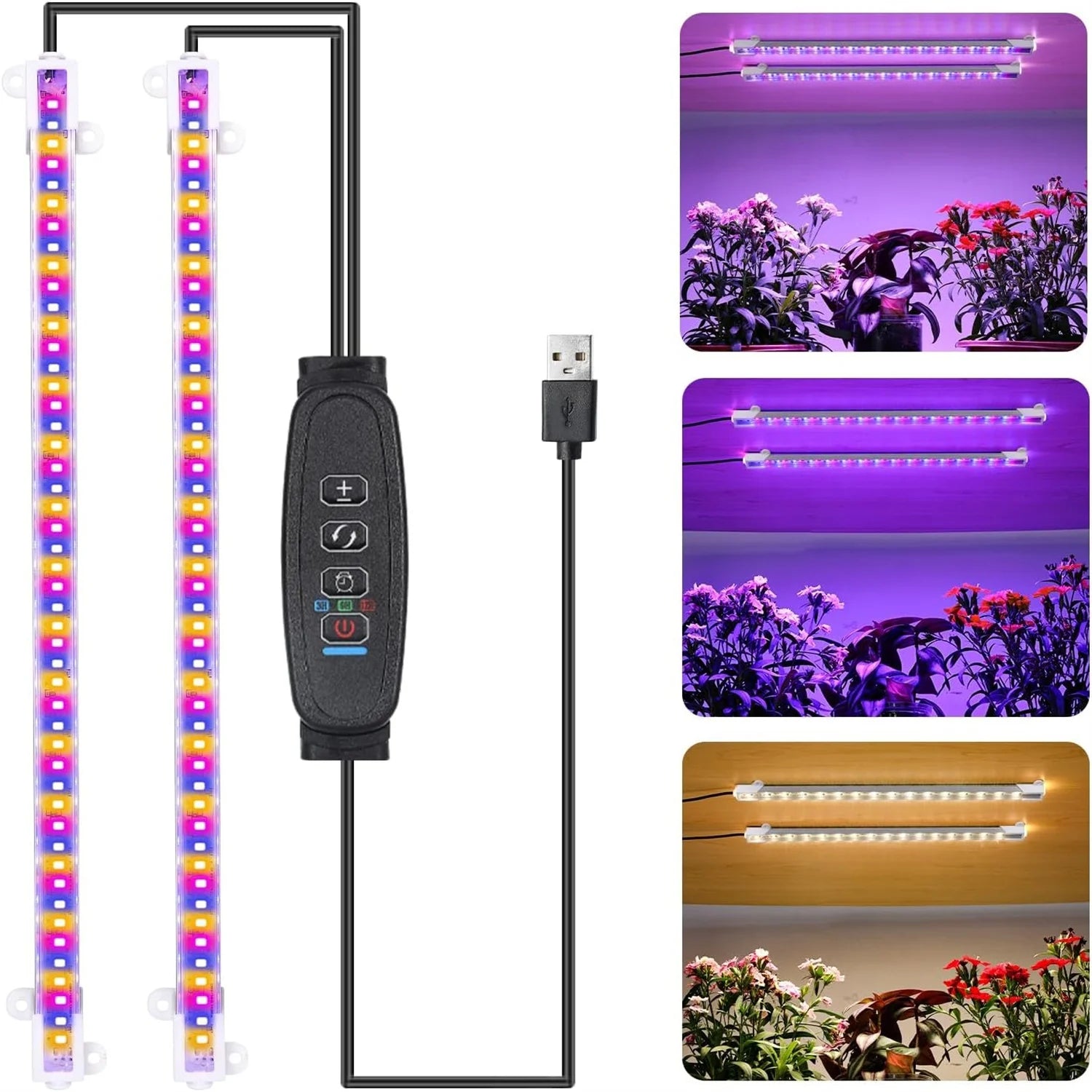 3-Color Indoor LED Grow Light — USB DC5V Full-Spectrum Phyto Lamp with Timer, Dimmable for Hydroponics & Plants
