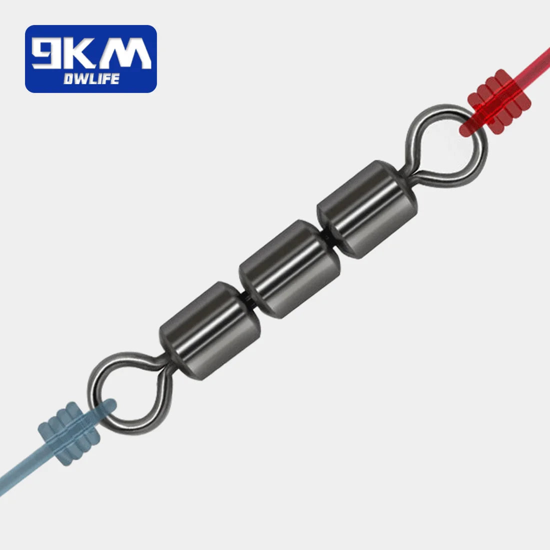 Upgrade your fishing gear with these 3 Roller Swivels (15–60pcs) by 9KM DWLIFE, designed for high-speed, high-performance fishing. Featuring triple bearing rolling barrels, these swivels provide three times the rotation speed and power compared with standard swivels, minimizing line twists and tangles when battling large gamefish. Perfect for saltwater and freshwater fishing, these swivels are essential for anglers who demand precision, durability, and smooth performance.