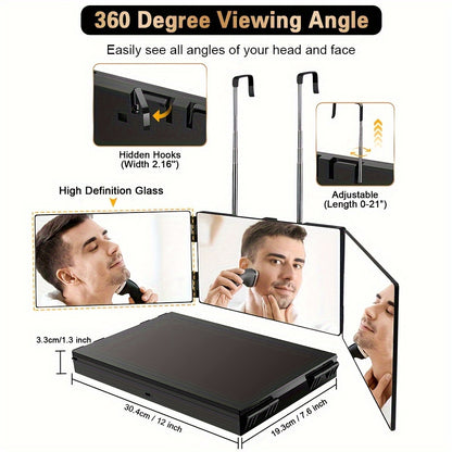 360° Wide Viewing Angle for Complete Coverage: This 3-way mirror provides a full 360° view, allowing you to see all angles of your head and face for accurate hair cutting, shaving, and grooming. Say goodbye to missed spots and uneven cuts—this mirror ensures precision every time!