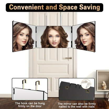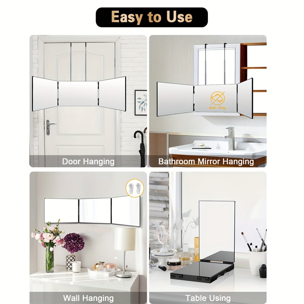 3-Way Compact Travel Mirror for Self Hair Cutting - 360° Wide Viewing Angle, Clear Anti-Fog HD Glass, Portable and Easy to Use for Men and Women