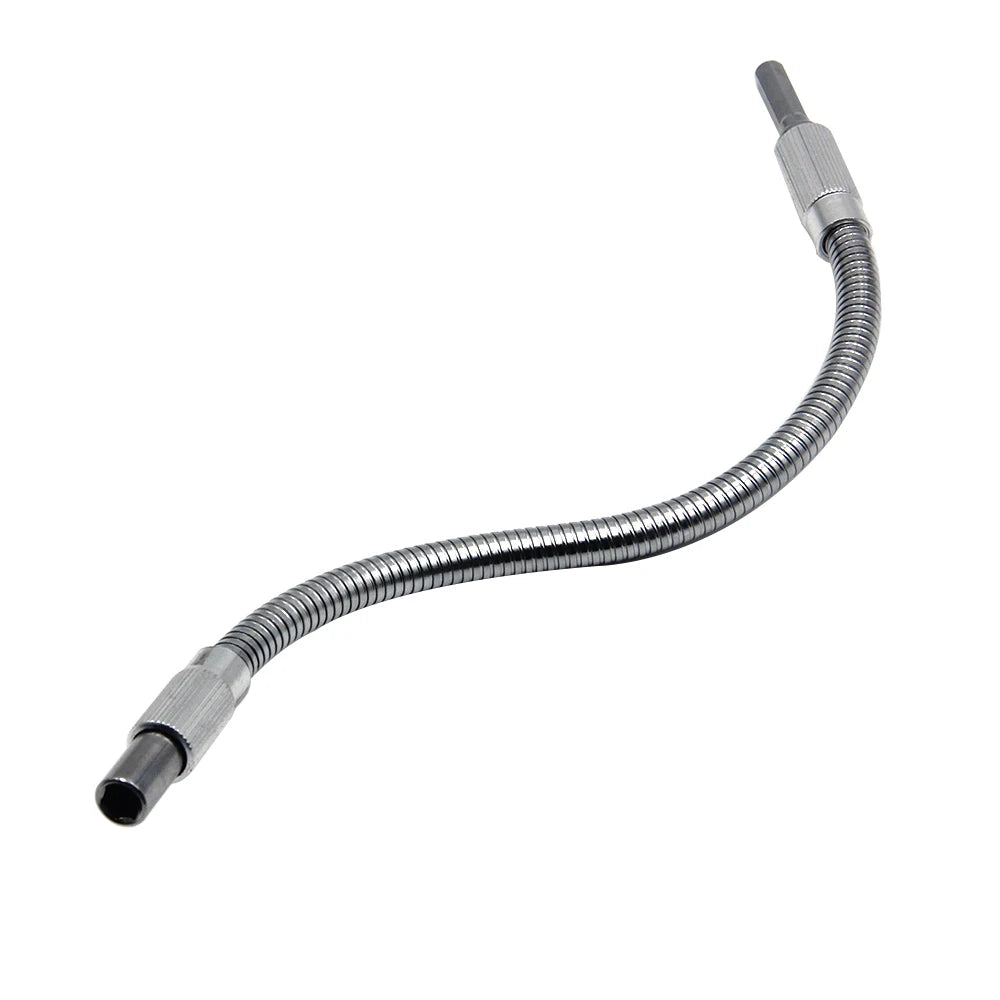 Crafted from high-quality carbon steel, this robust tool boasts a length of 300mm and a 6.35mm hexagonal handle. Designed for versatility, it features a universal flexible shaft that effortlessly navigates through awkward angles and tight spaces. Whether you're a professional or a DIY aficionado, this tool ensures that no screw is unreachable and no corner is too tight.