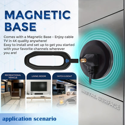 - Strong Magnetic Base for Easy Installation: Designed with a strong magnetic base, this antenna can be easily mounted on any metal surface, making installation a breeze. Set it up on a window sill, wall, or roof, and enjoy immediate access to a high-quality TV signal.