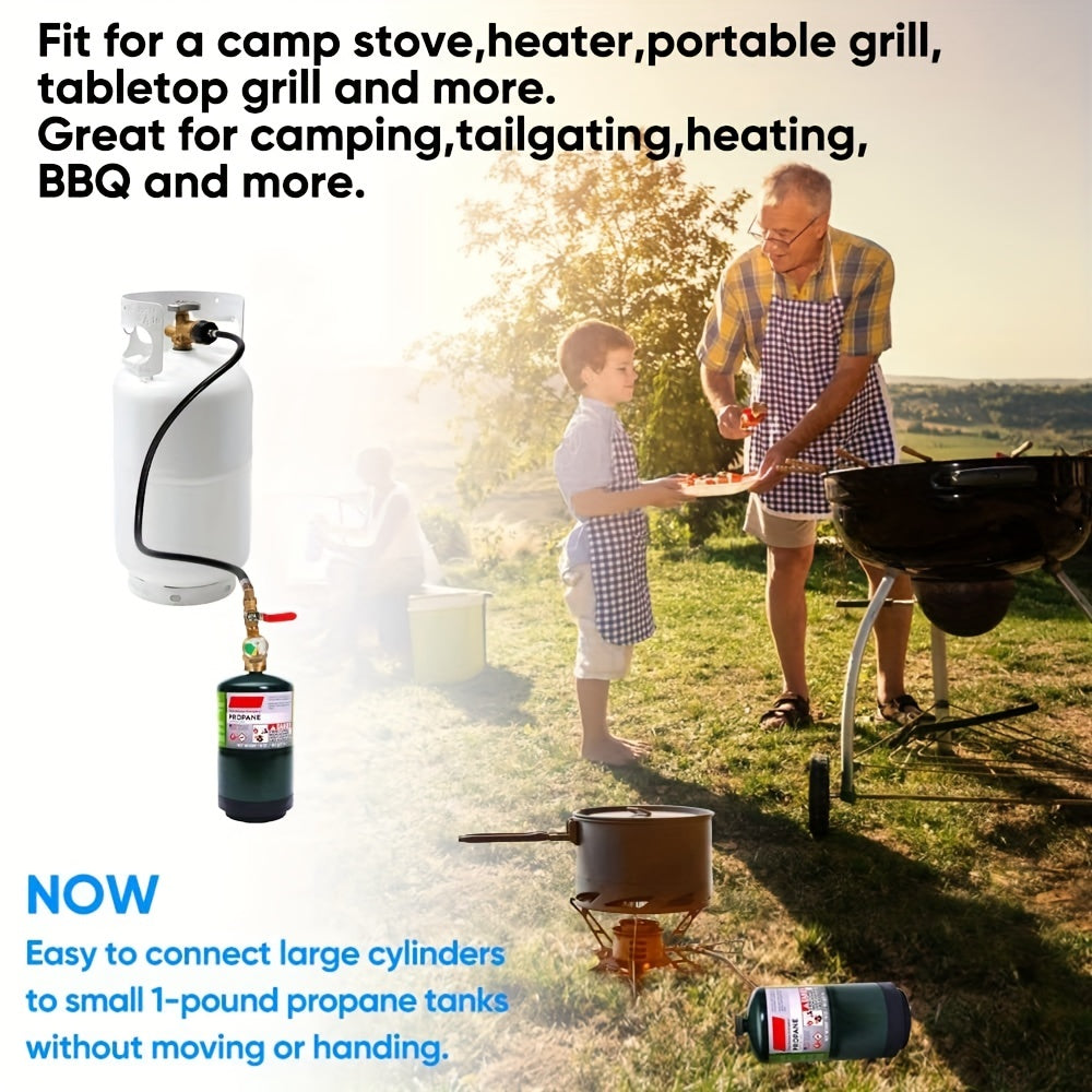 Compatible with 1LB Propane Gas Tanks: The 1LB propane gas tank adapter is compatible with standard camping propane tanks, making it perfect for outdoor enthusiasts who want a convenient and portable fuel source for their grills, stoves, or heaters.