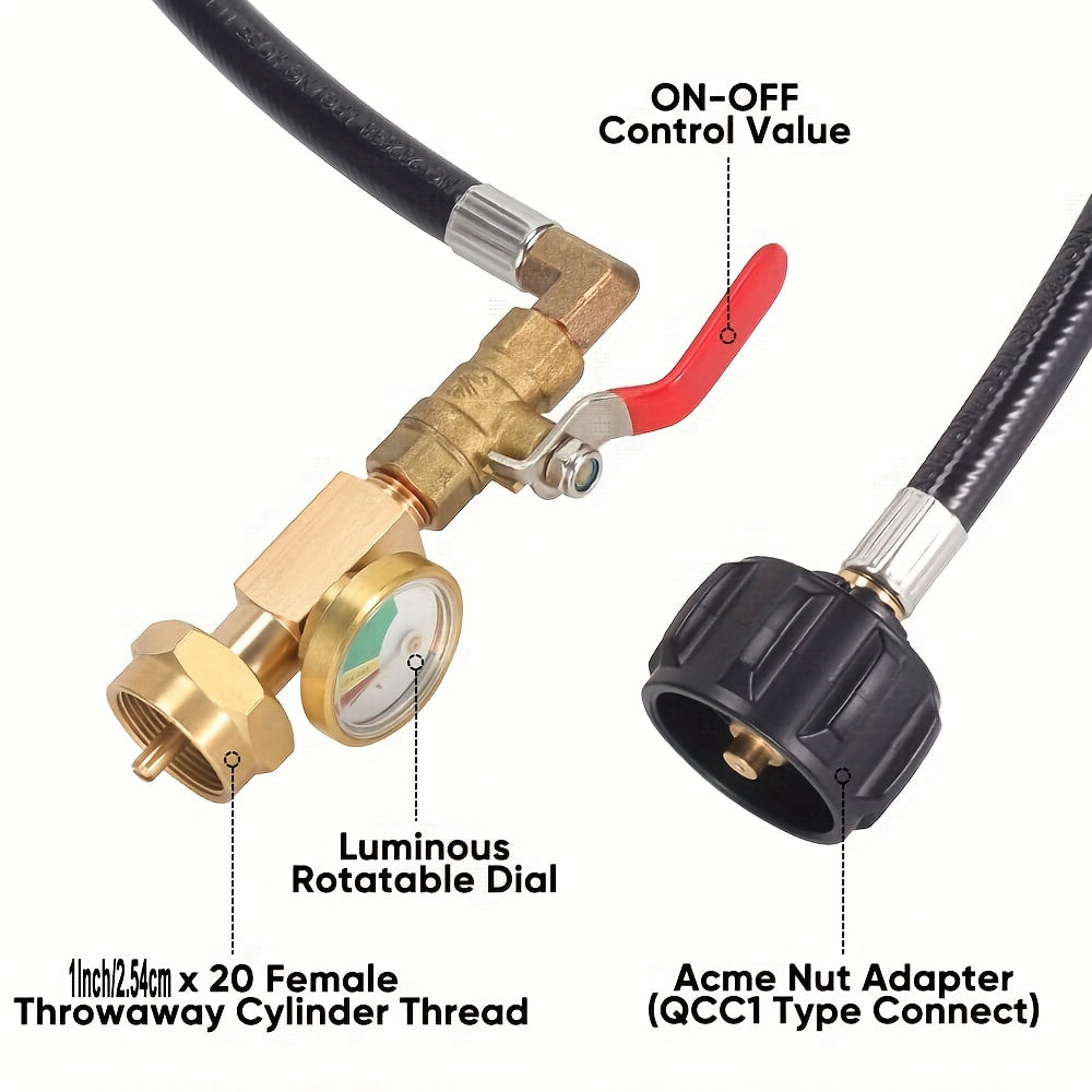 Built-In Pressure Gauge for Safe Monitoring: Equipped with a pressure gauge, this adapter hose allows you to easily monitor propane levels to prevent overfilling and ensure safe usage. The gauge provides peace of mind while cooking, helping you maintain the correct pressure for optimal performance.