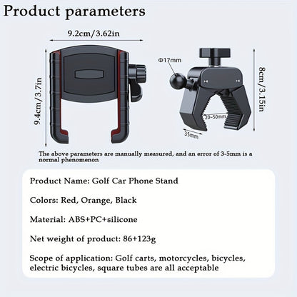 360° Universal Golf Cart Phone Holder - Free Rotation, Suitable for Electric Bikes, Motorcycles & Square Poles, Durable ABS Material - Enhance Your Golf Journey