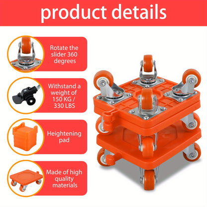 360° Swivel Design Heavy Duty Furniture Mover Set - 400KG/880LB Capacity, Carbon Steel Construction, 360° Rotation Wheels, Labor-Saving Lifter for Sofas, Refrigerators, Beds, and Appliances