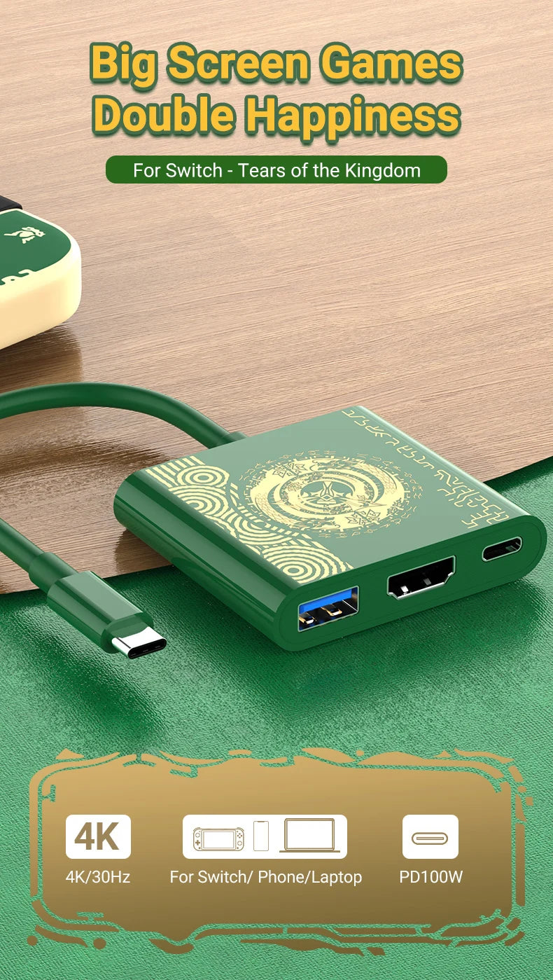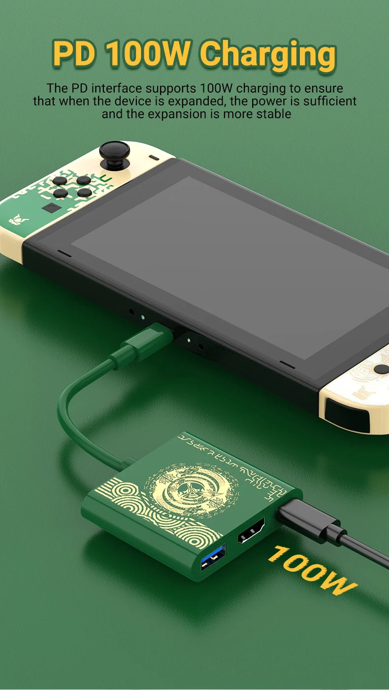 4K Switch TV Docking Station — 3-in-1 USB-C Game Hub with USB 3.0, HDMI & 100W PD for Laptop, Nintendo Switch/Switch OLED, Mobile Phone