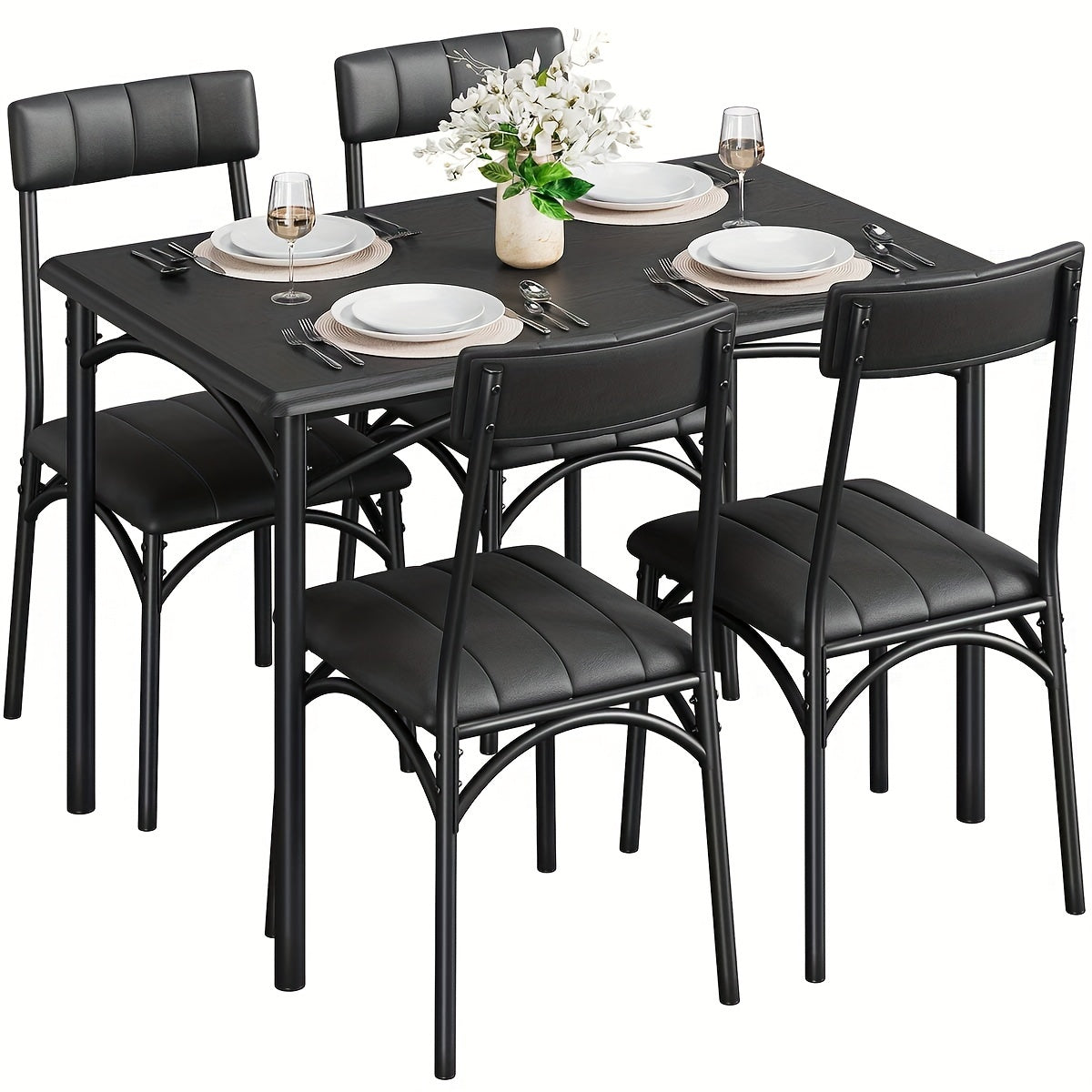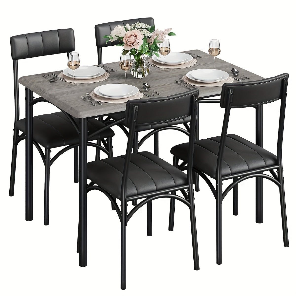 Enhance your dining experience with this stylish and functional dining table set. Order the 5-Piece Rectangular Dining Table Set today and enjoy a modern, cozy, and comfortable dining space for everyday meals and special occasions!